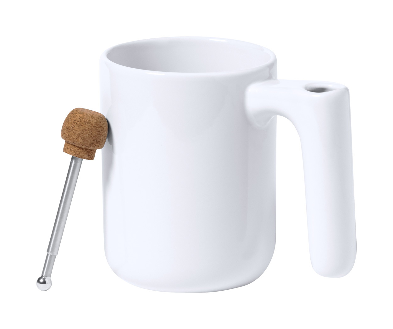 Kerámia bögre rozsdamentes acél és natúr parafa italkeverővel, 500 ml.