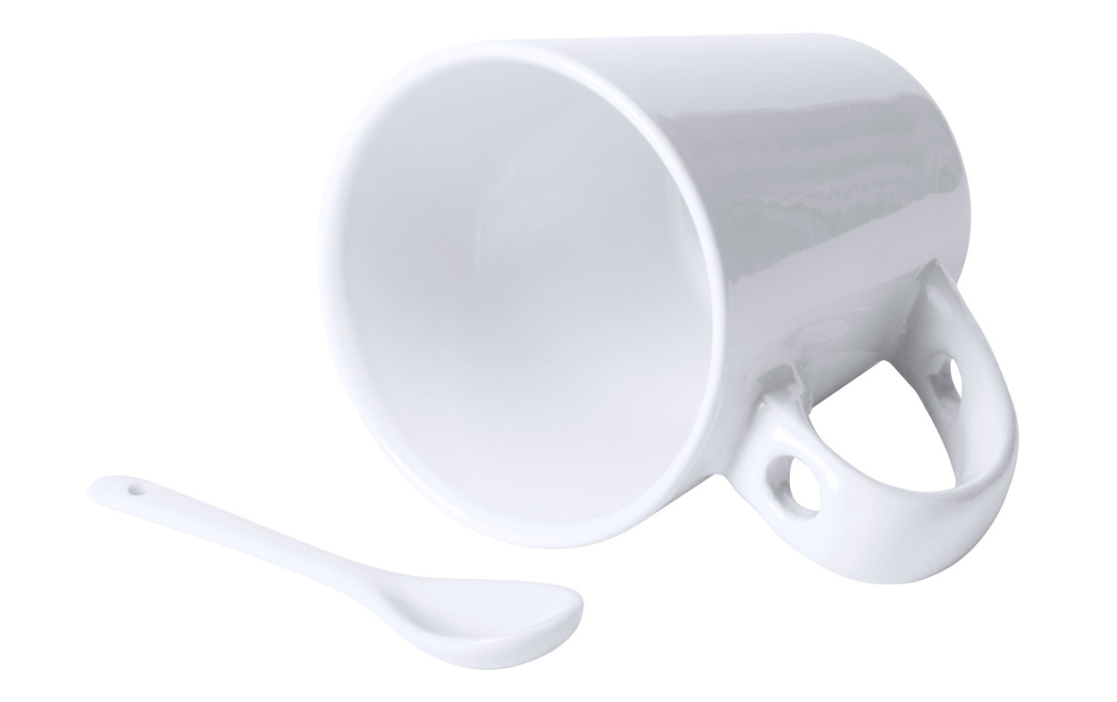 Szublimációs technológiával emblémázható kerámia bögre kanállal. 340 ml. Díszdobozbam szállítjuk.