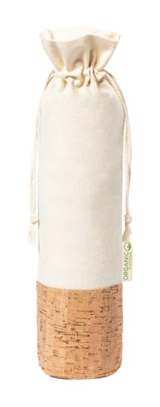 Organikus pamutból és természetes parafából készült, húzózsinóros ajándéktáska 1 borosüveghez.