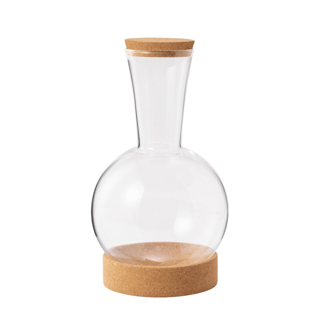 Boroszilikát üvegből készült bor dekantáló természetes parafa talppal és fedéllel, 1700 ml.