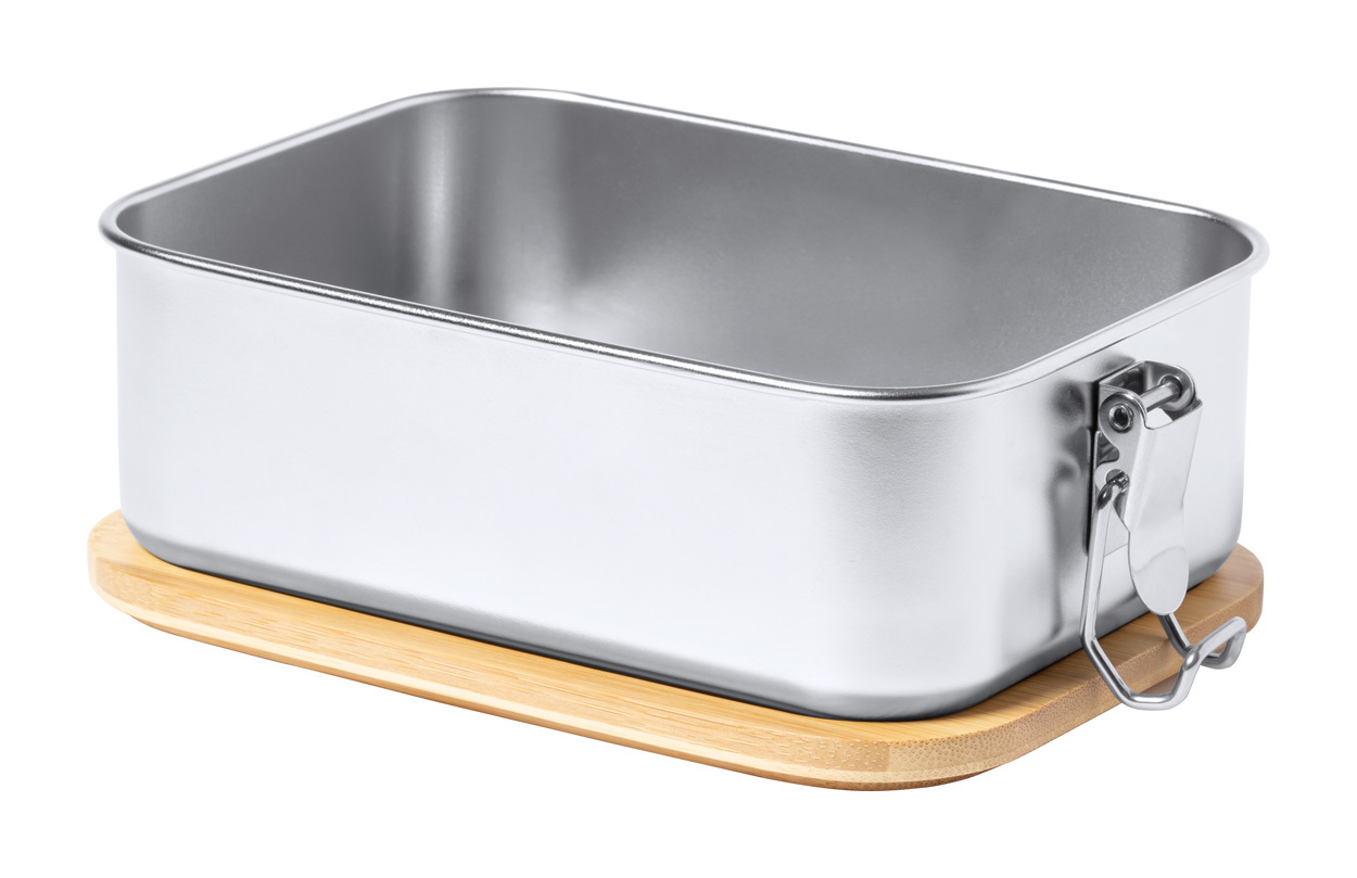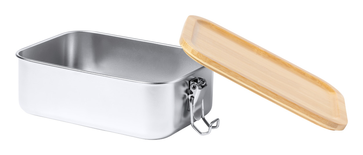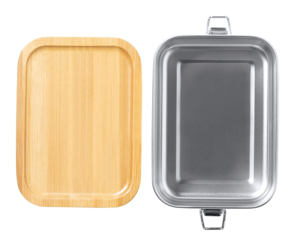 Rozsdamentes acél ételdoboz bambusz tetővel és biztonsági zárral, 800 ml.