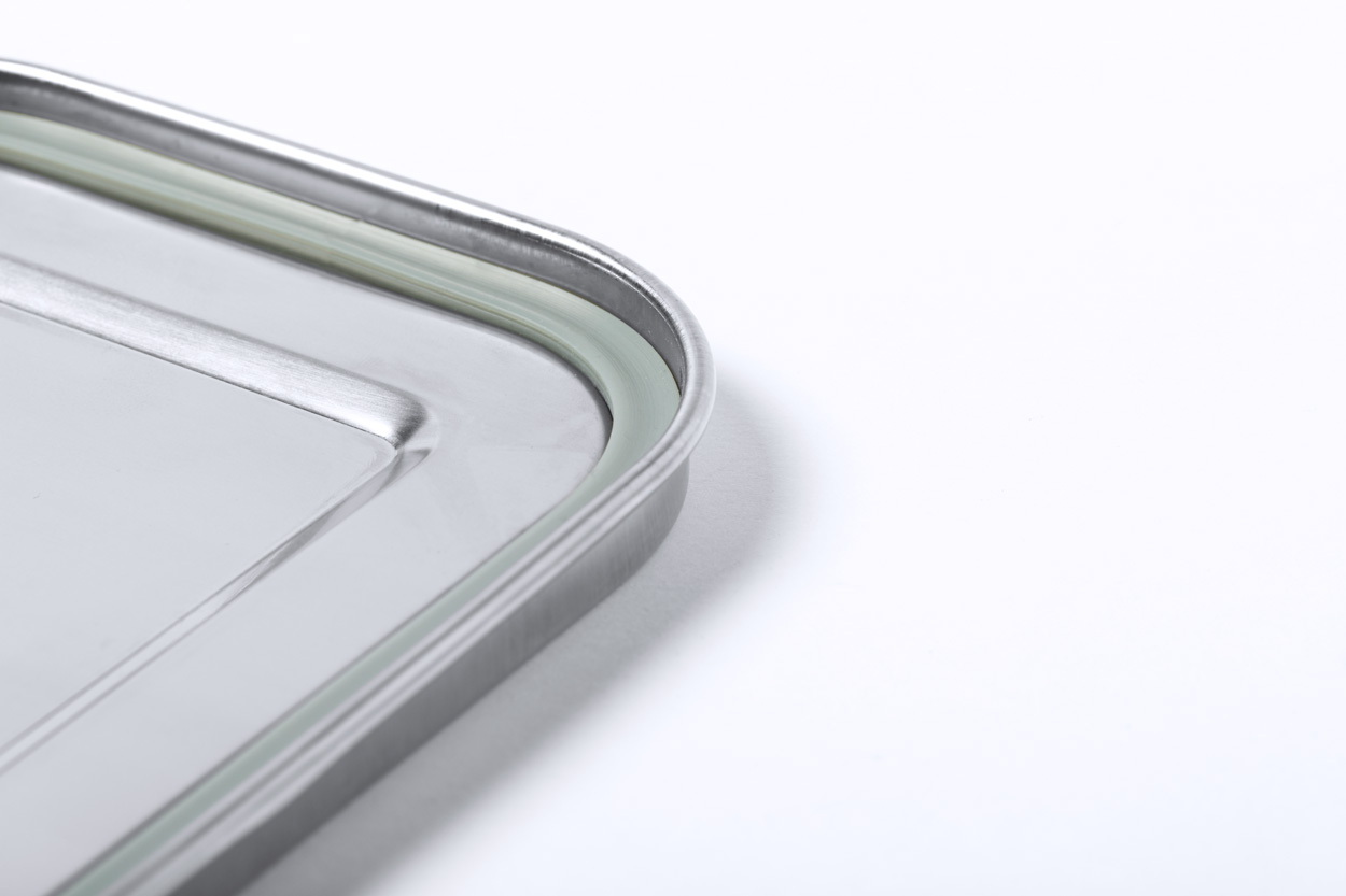 Rozsdamentes acél uzsonnásdoboz vízálló fedéllel és csatos zárral, 750 ml.