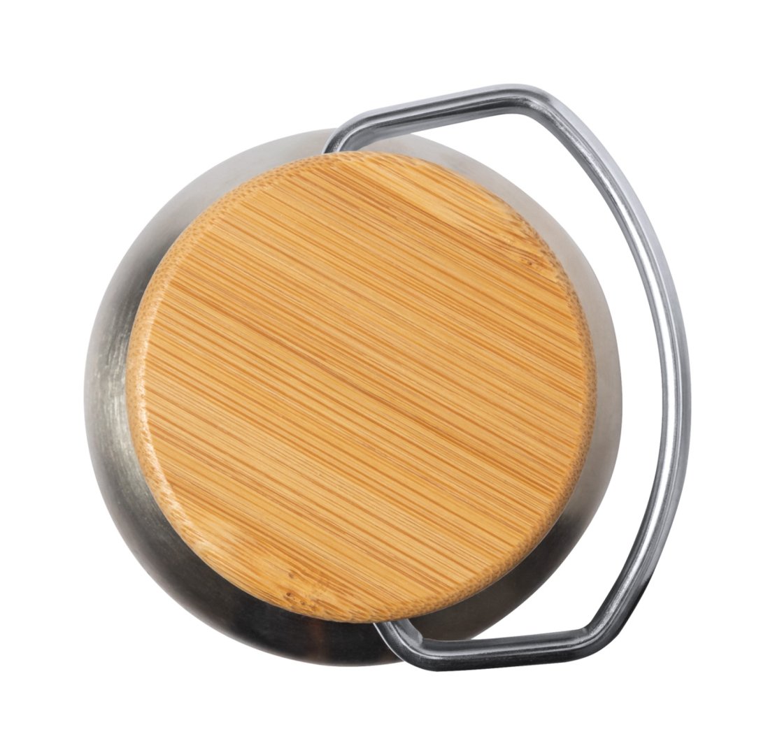 Duplafalú, rozsdamentes acél termosz természetes parafa alappal és bambusz hordfedéllel, 650 ml. A szigetelés 6 órán keresztül melegen, 15 órán át hidegen tartja az italokat.