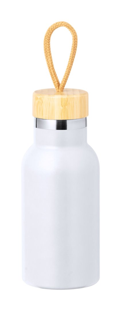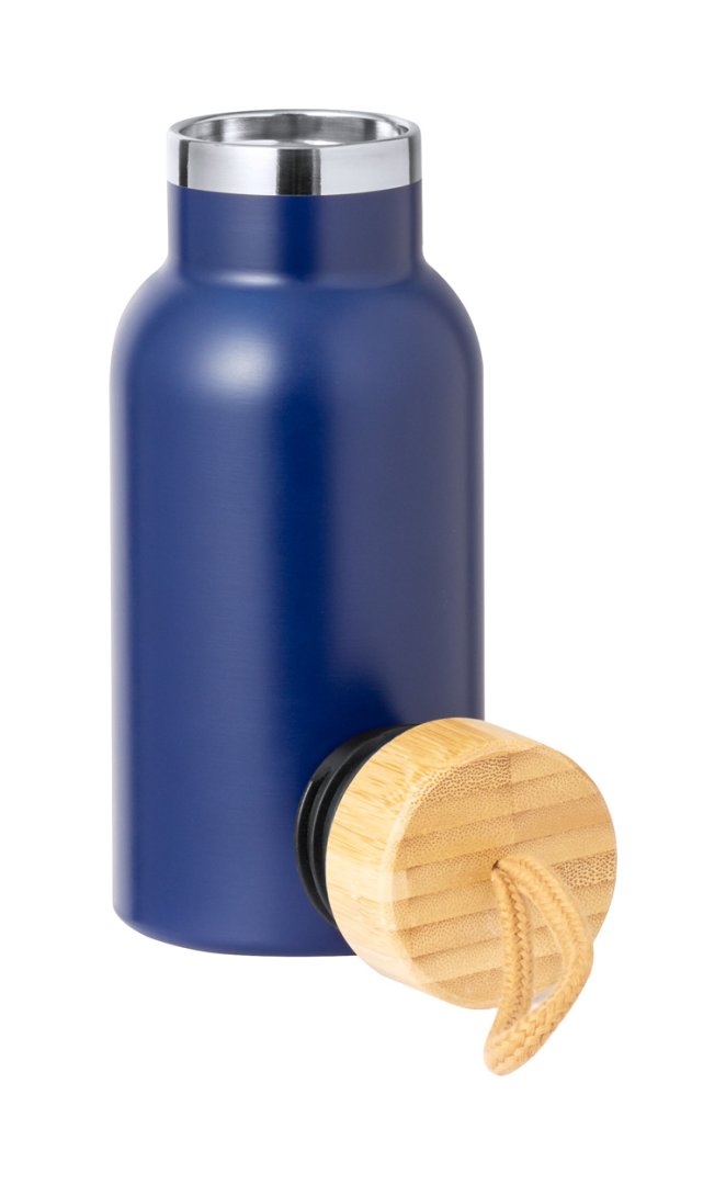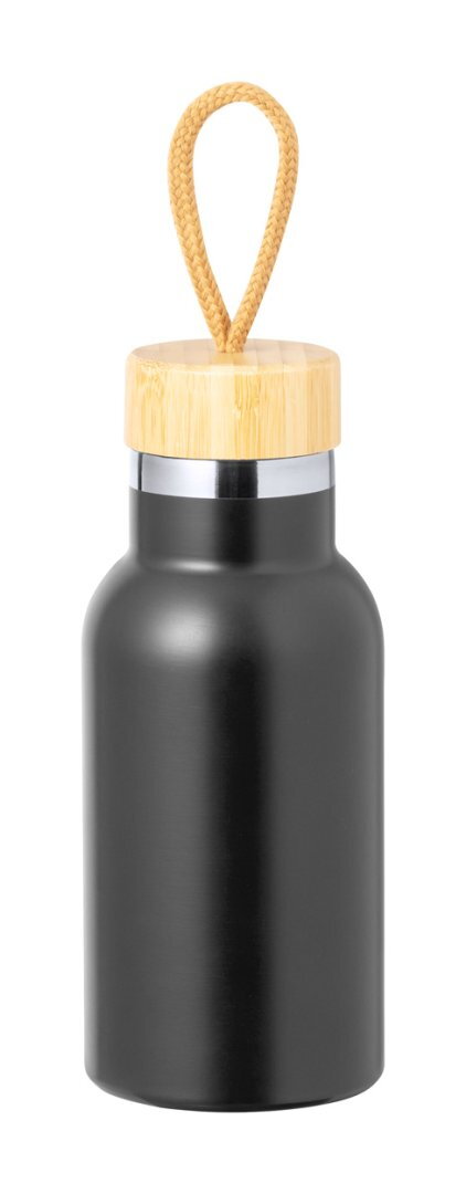 Duplafalú, rozsdamentes acél termosz bambusz tetővel és hordszíjjal, 350 ml. A szigetelés 3 órán keresztül melegen, 15 órán át hidegen tartja az italokat.
