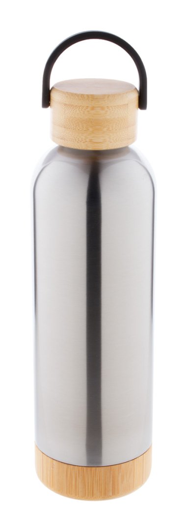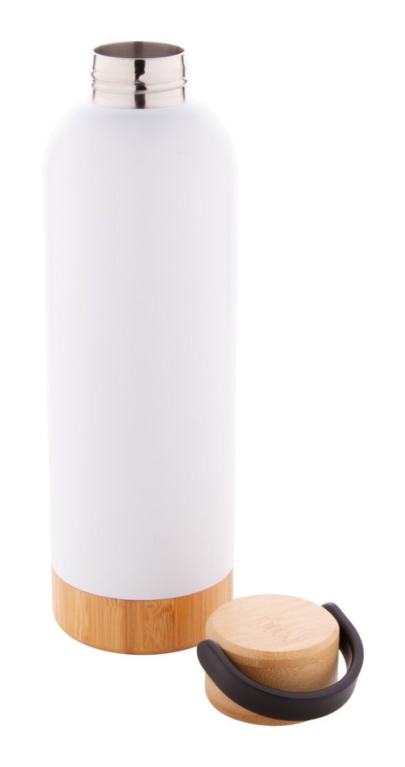 Rozsdamentes acélból készült duplafalú termosz, bambusz hordozható fedéllel és talppal, 500 ml.