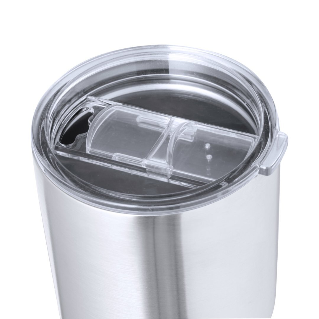 Duplafalú, újrahasznosított rozsdamentes acél termo pohár ivófedéllel, 800 ml. A szigetelés 3 órán át melegen és 6 órán keresztül hidegen tartja az italokat.