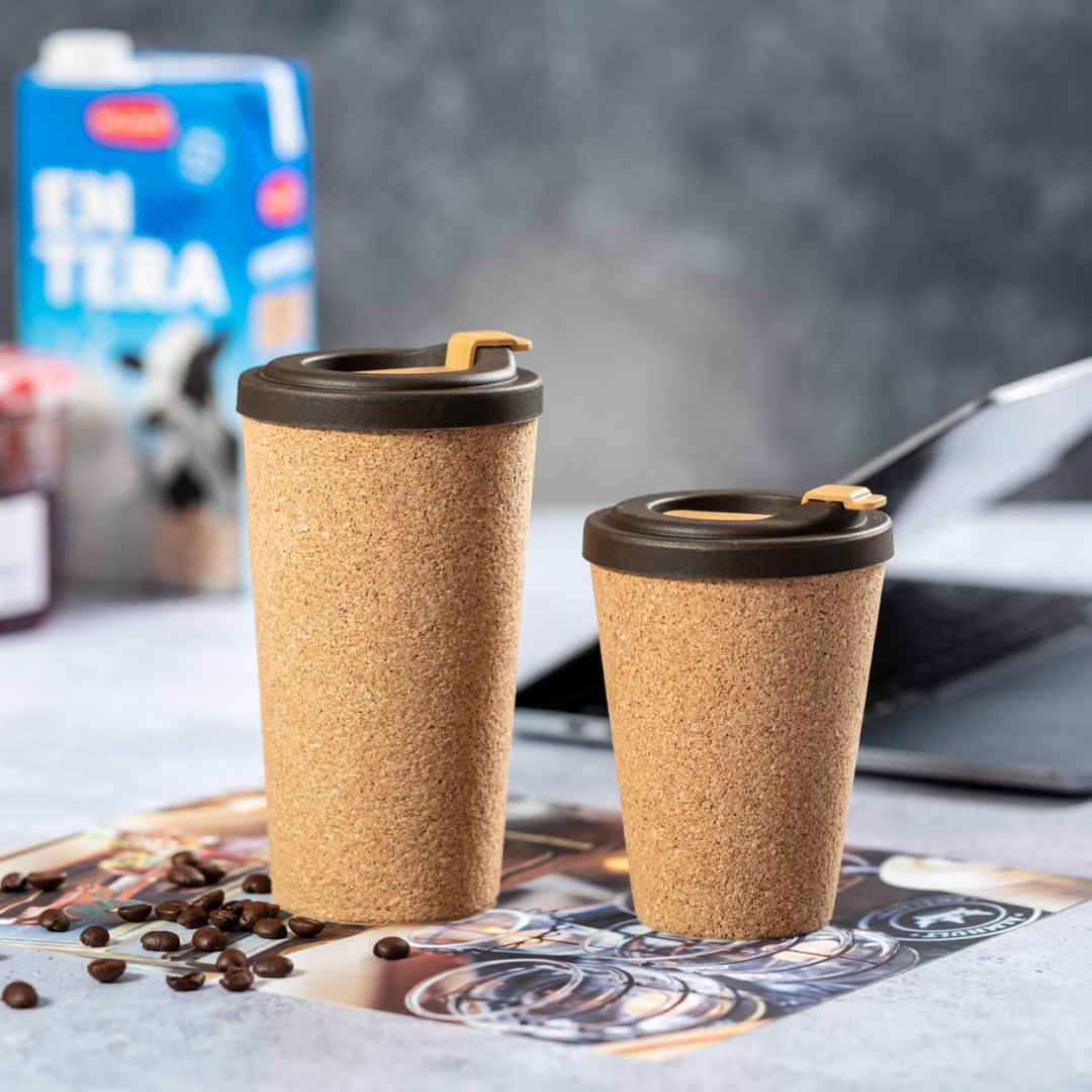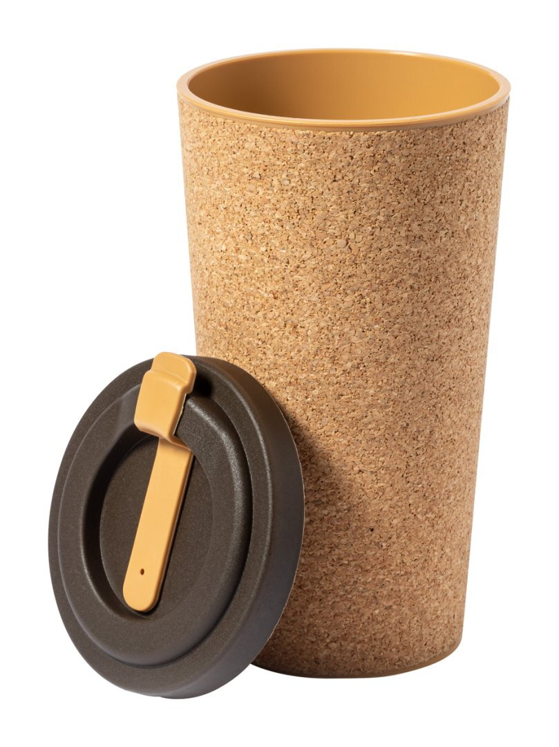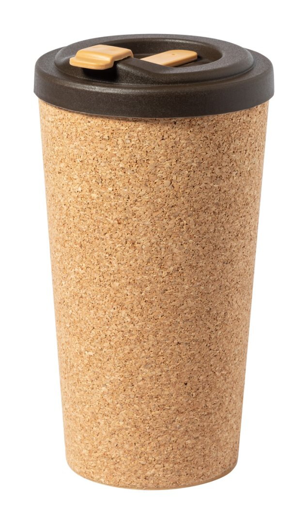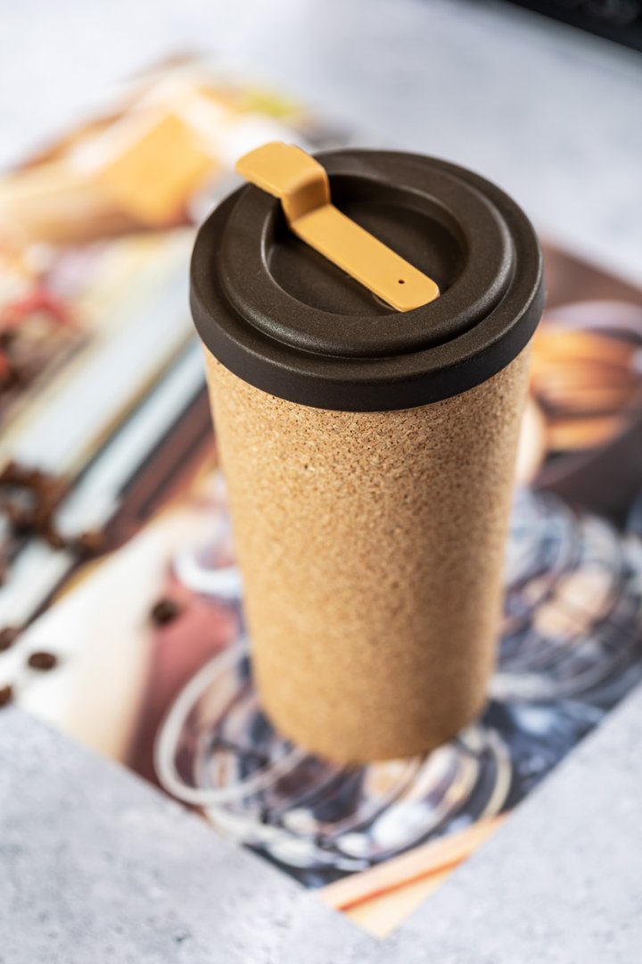 Természetes parafa bevonatú, duplafalú PP műanyag thermo bögre ivófedéllel. 500 ml, BPA mentes.