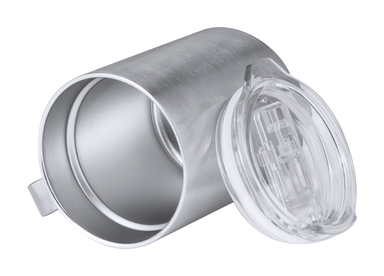 Duplafalú, újrahasznosított rozsdamentes acél thermo bögre ivófedéllel, 370 ml. A szigetelés 3 órán át tartja melegen és 6 órán át hidegen az italokat.