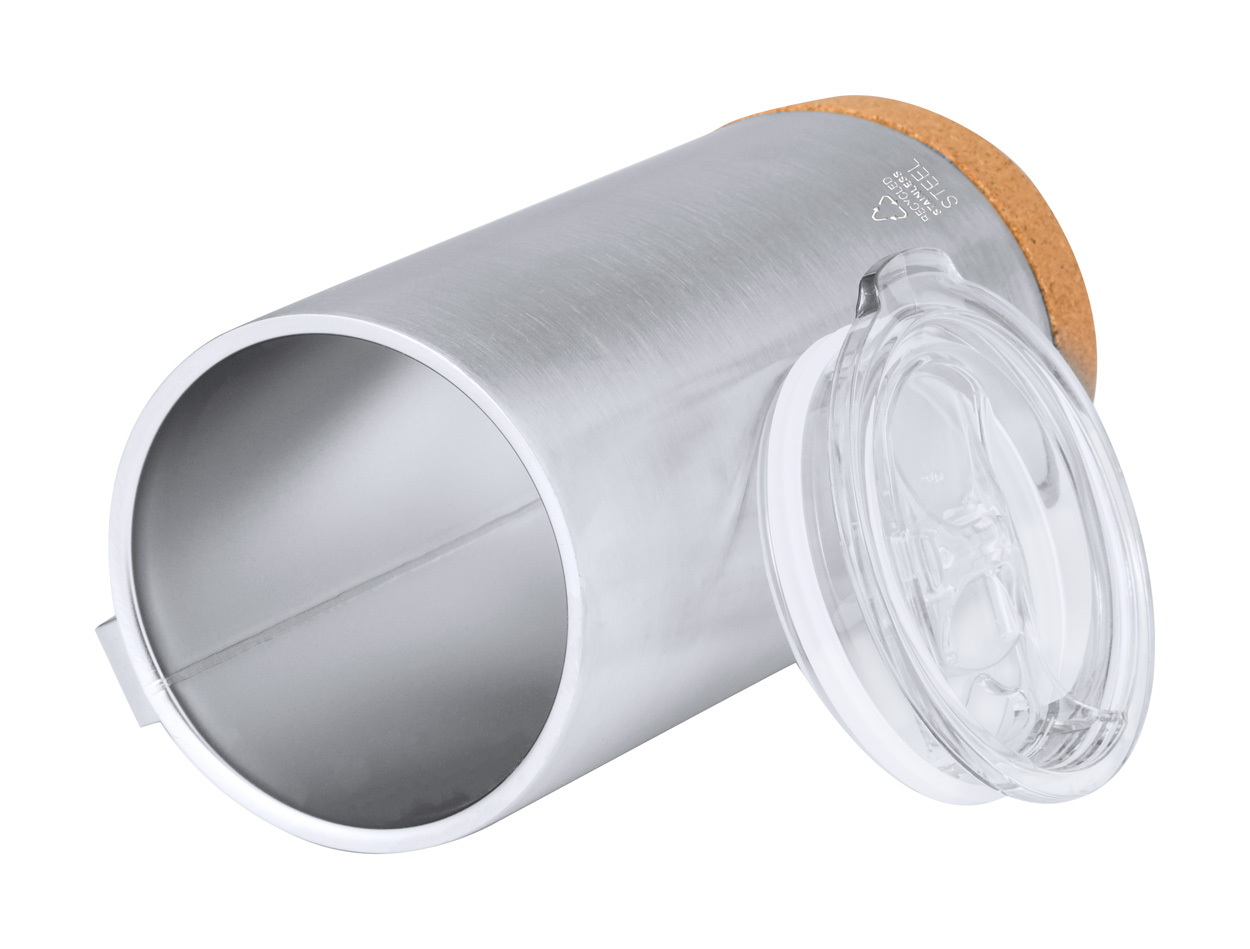 Duplafalú, újrahasznosított rozsdamentes acél thermo bögre parafa alappal. 450 ml. A szigetelés 3 órán át tartja melegen és 6 órán át hidegen az italokat.
