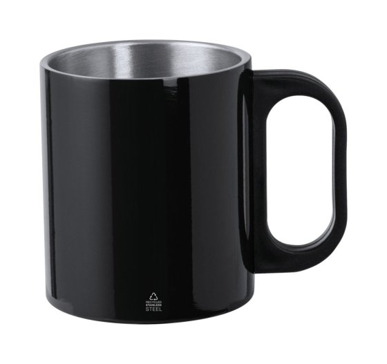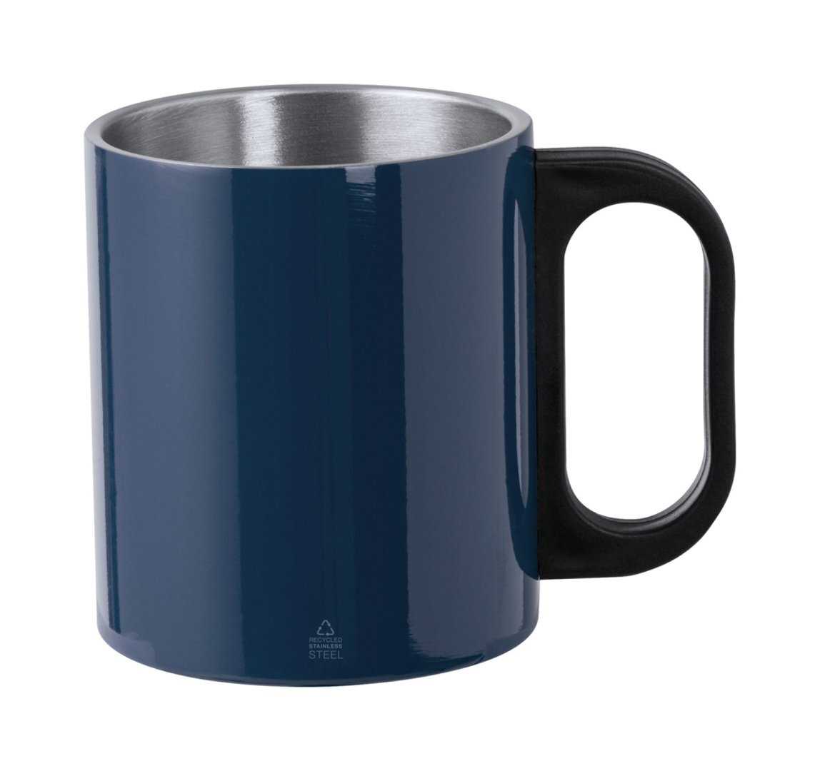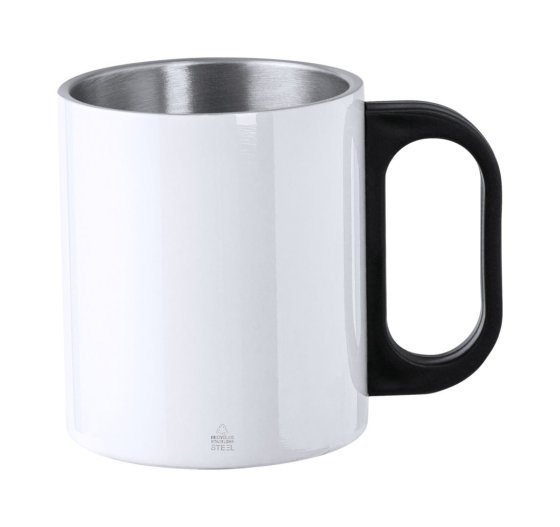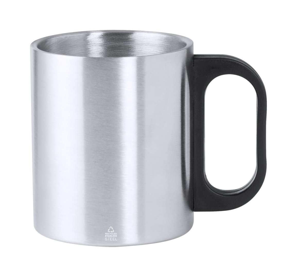 Duplafalú, újrahasznosított rozsdamentes acél thermo bögre PP műanyag fogantyúval, 300 ml.