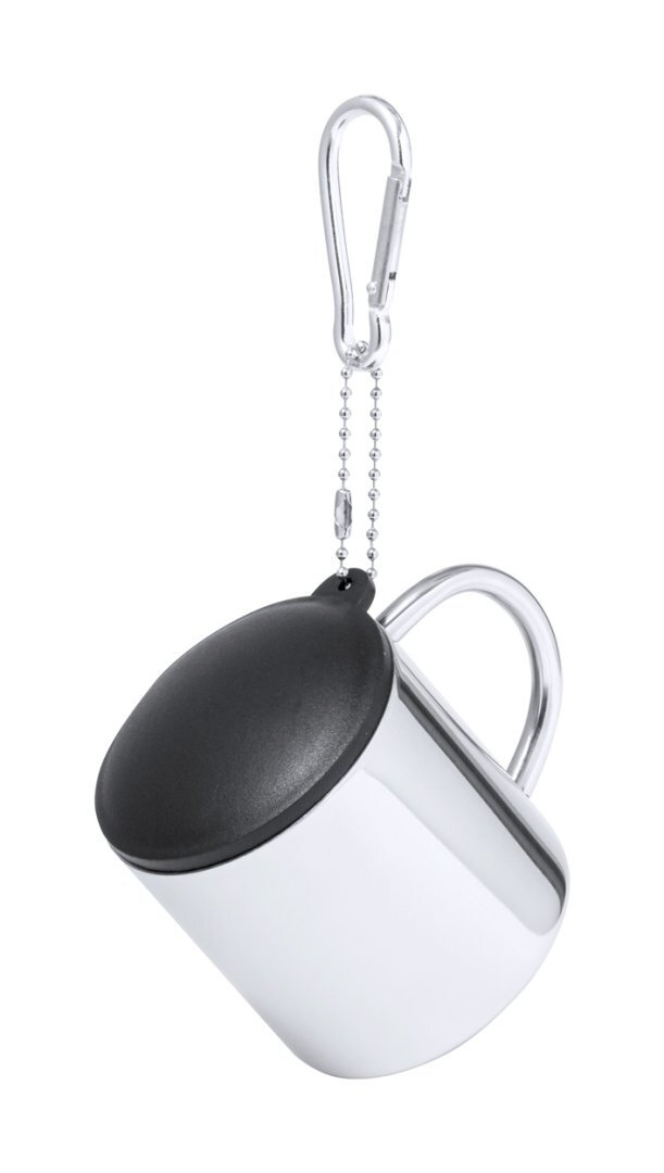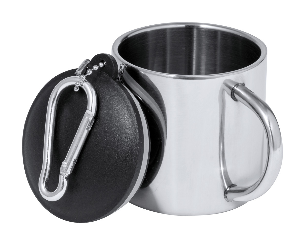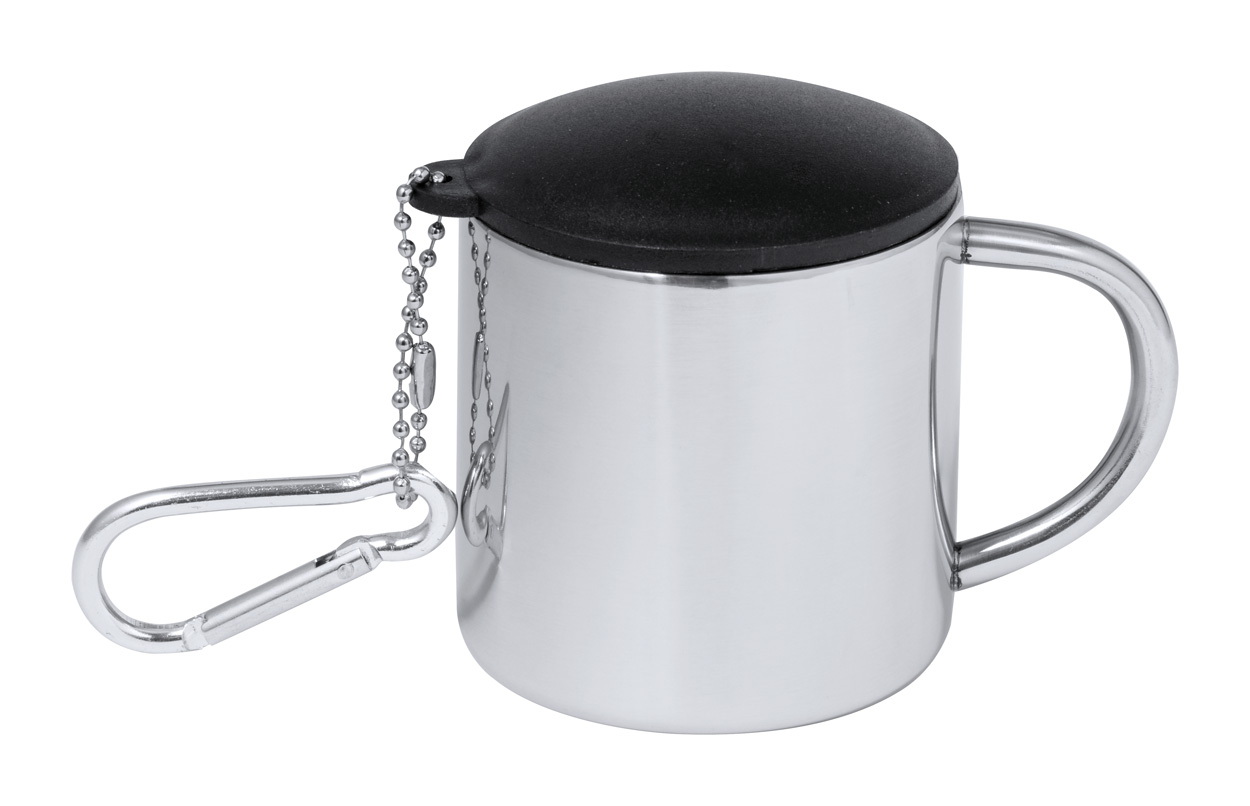 Duplafalú, rozsdamentes acél thermo bögre fedéllel és alumínium karabinerrel. 145 ml. Kraft papír dobozban szállítjuk.