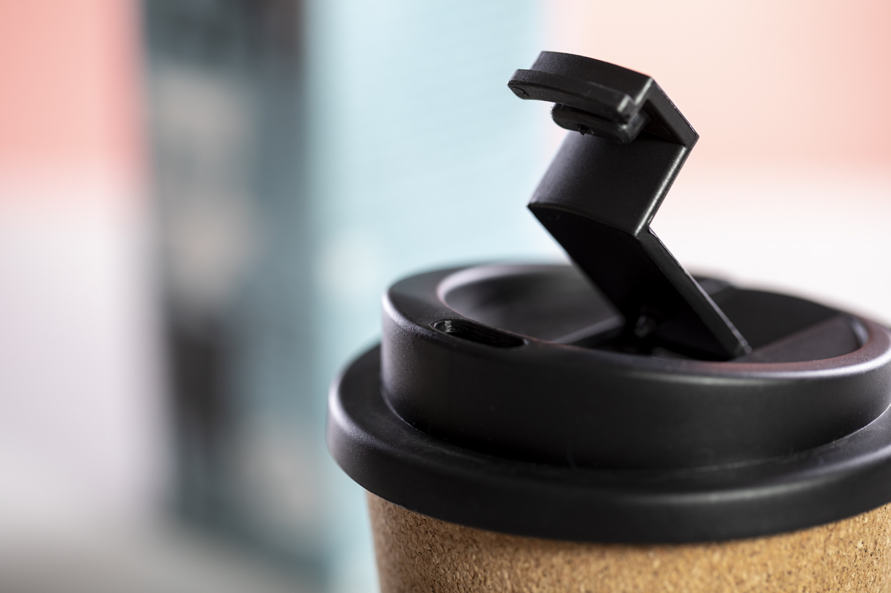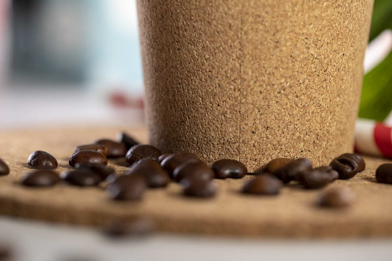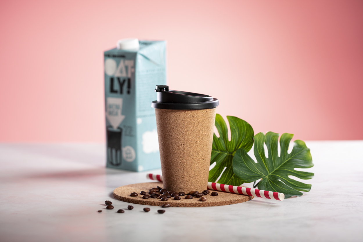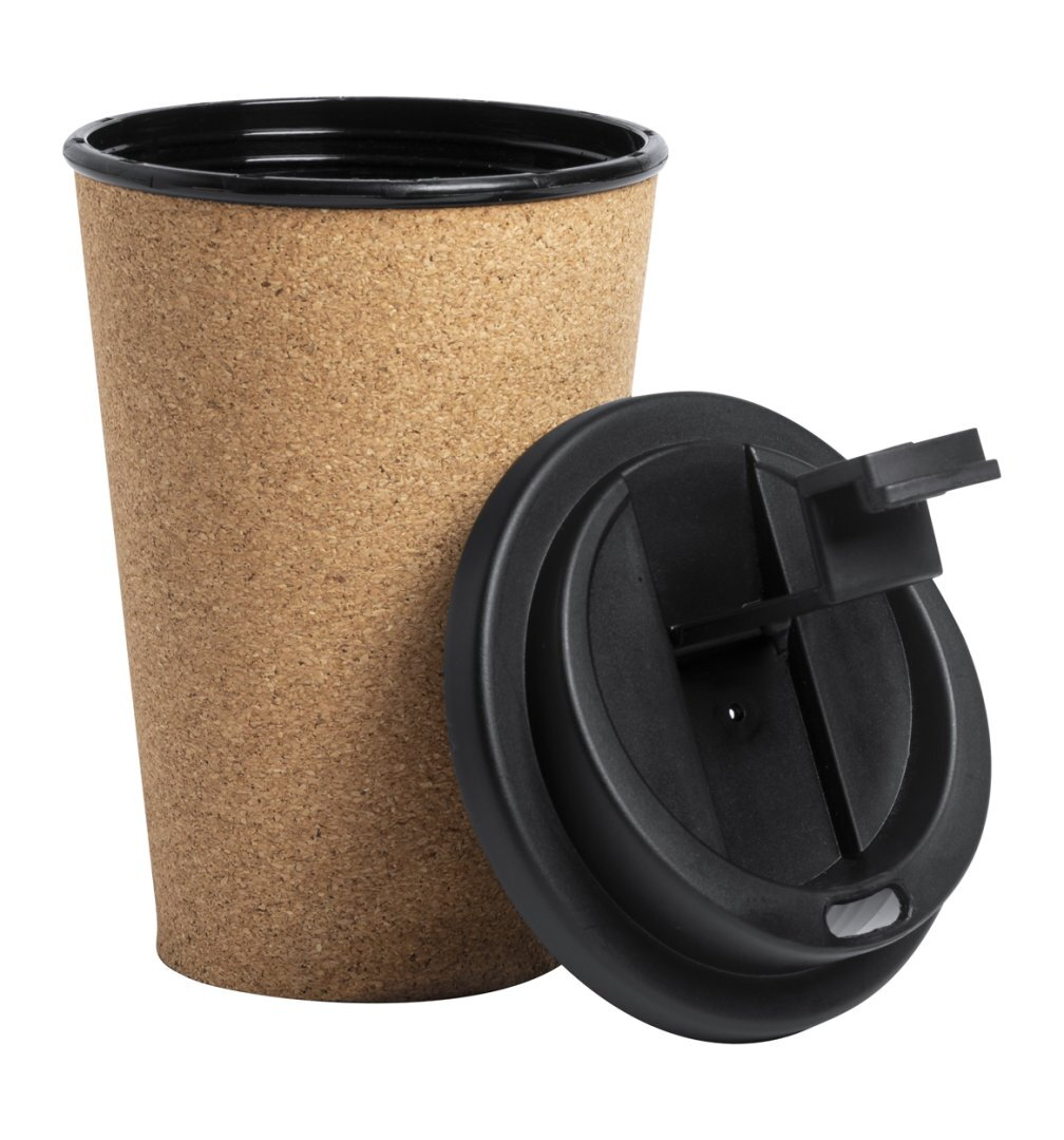Természetes parafa borítású, egyfalú thermo bögre biztonsági ivófedéllel, 350 ml. BPA-mentes.
