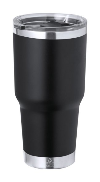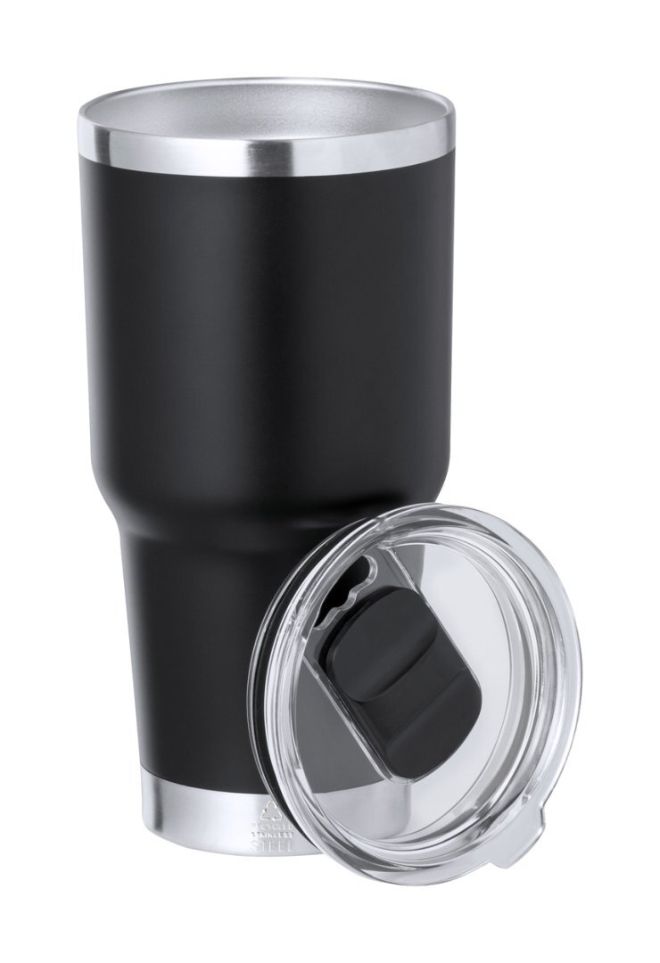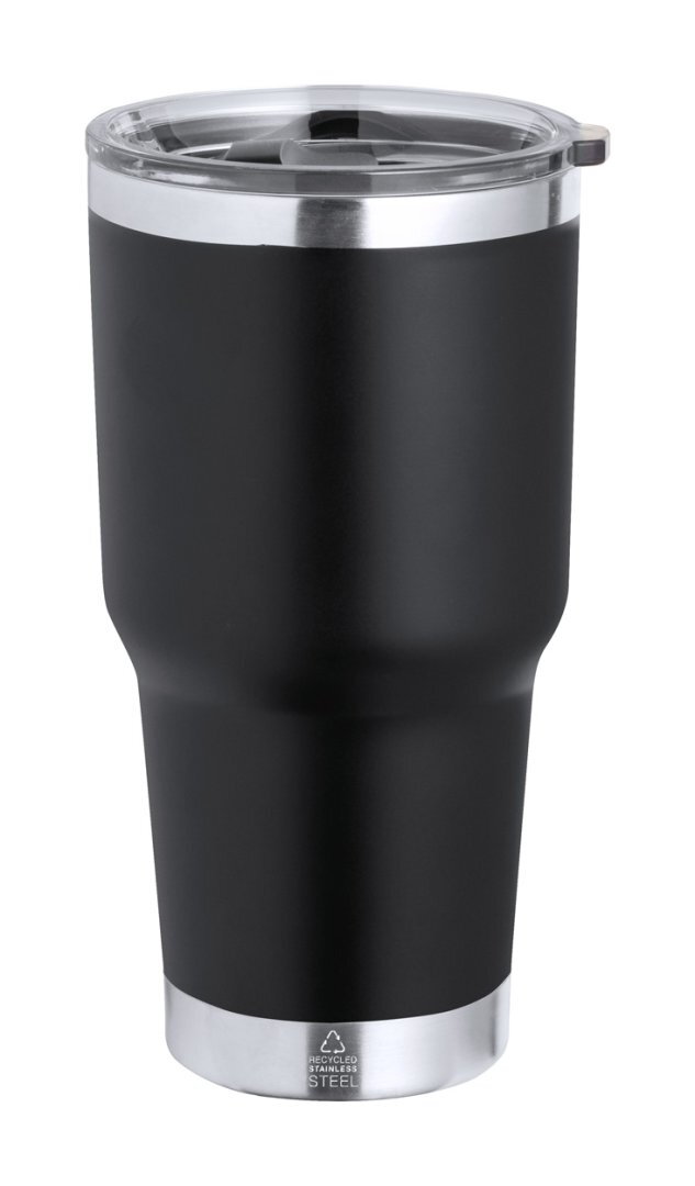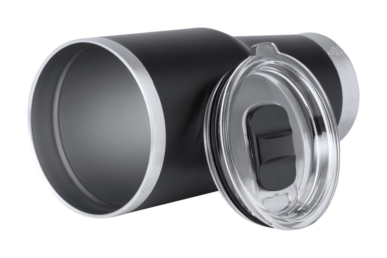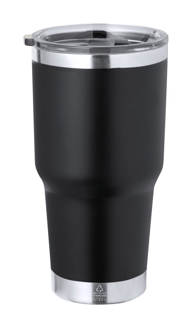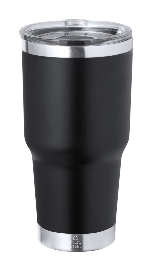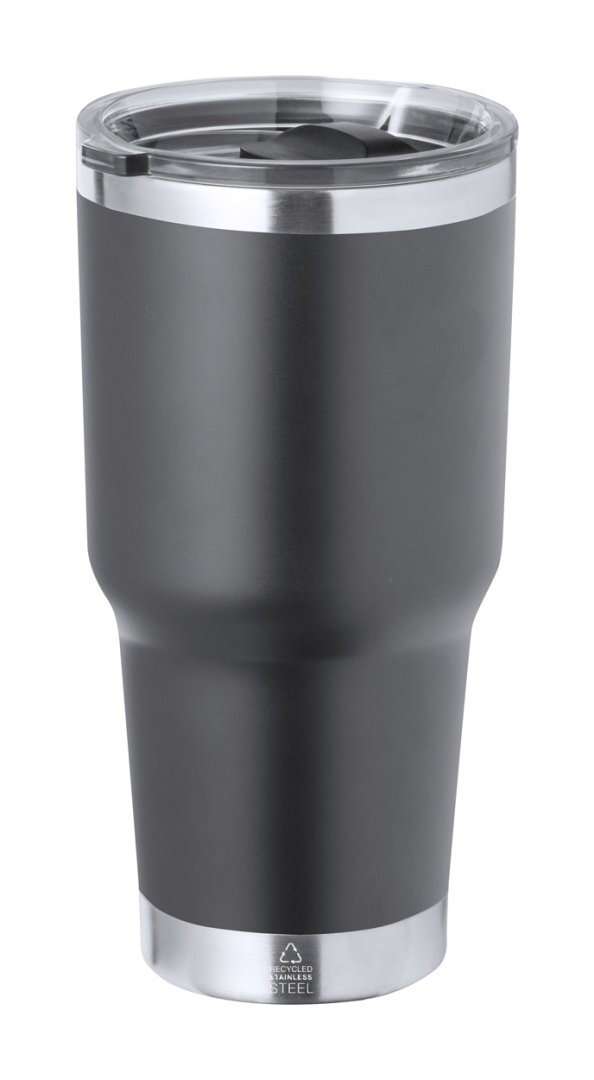 Duplafalú, újrahasznosított rozsdamentes acél thermo bögre műanyag ivófedéllel, 600 ml.