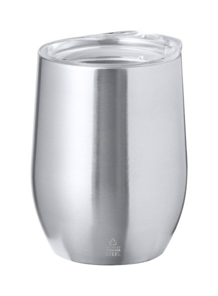Duplafalú, újrahasznosított rozsdamentes acél termo pohár ivófedéllel, 340 ml. A szigetelés 3 órán át melegen és 6 órán keresztül hidegen tartja az italokat.