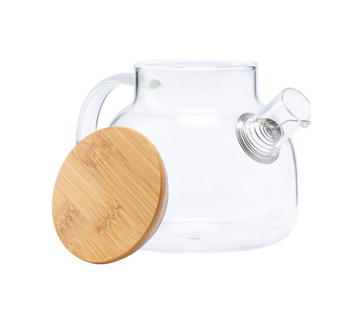 Boroszilikát üveg teáskanna bambusz fedéllel és rozsdamentes acél teaszűrővel, 1000 ml.