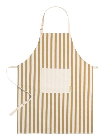 Csíkos, organikus pamutból készült kötény elülső zsebbel. Megkülönböztető organikus pamut címkével. 100% organikus pamut, 220 g/m².