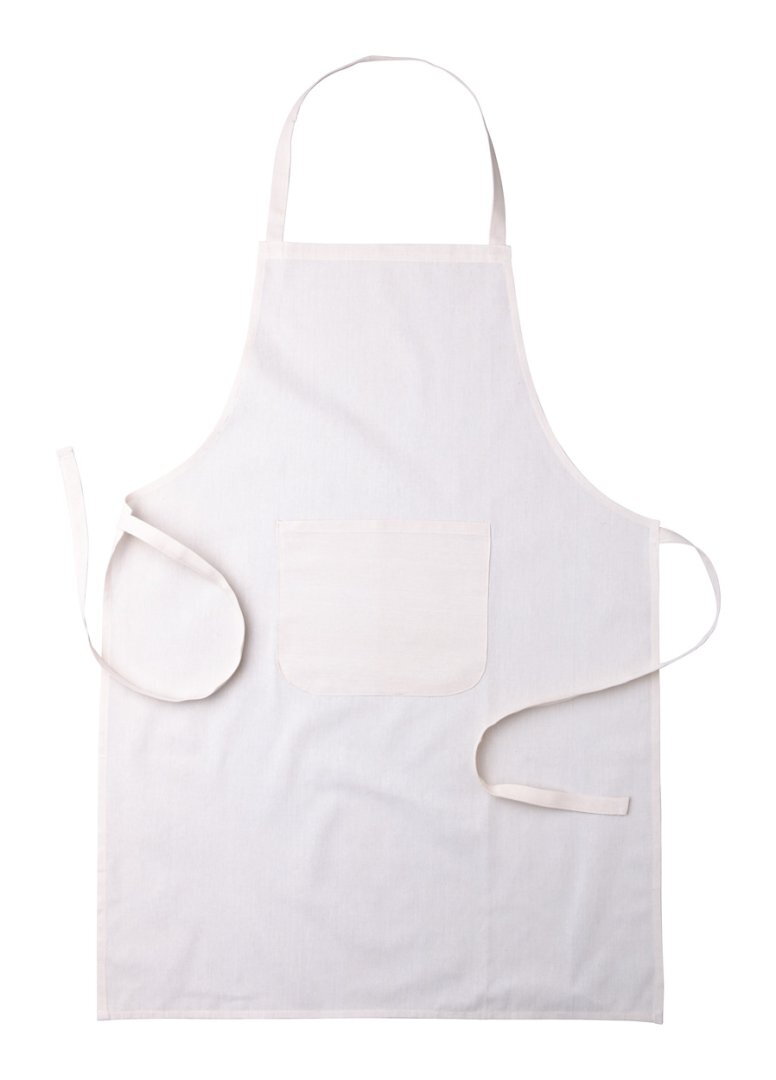100% pamut kötény elöl zsebbel, 150 g/m².