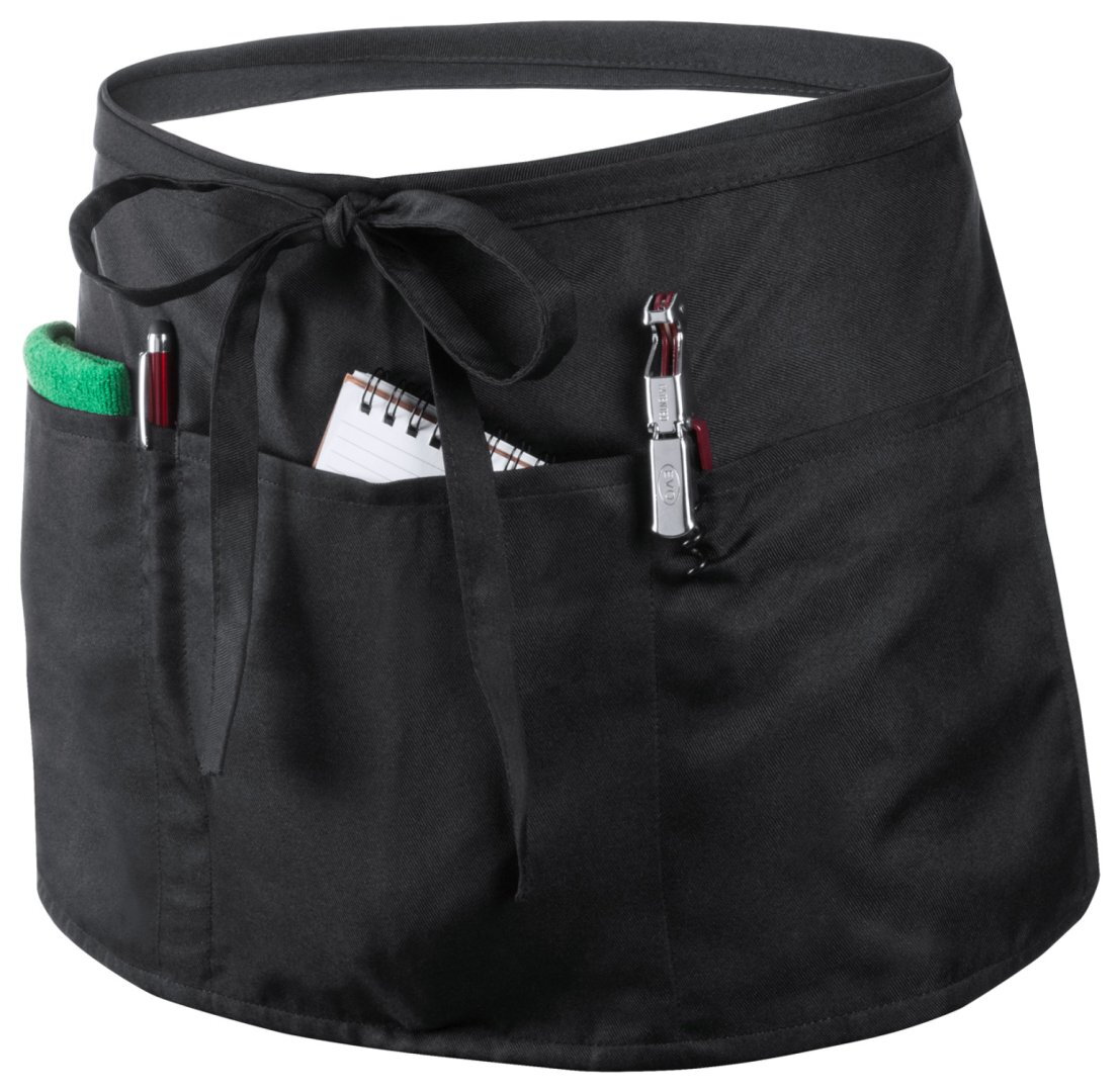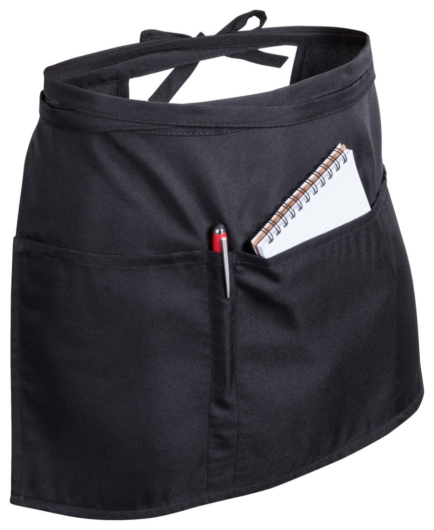 100% poliészter, fekete színű pincérkötény, 3 zsebbel.