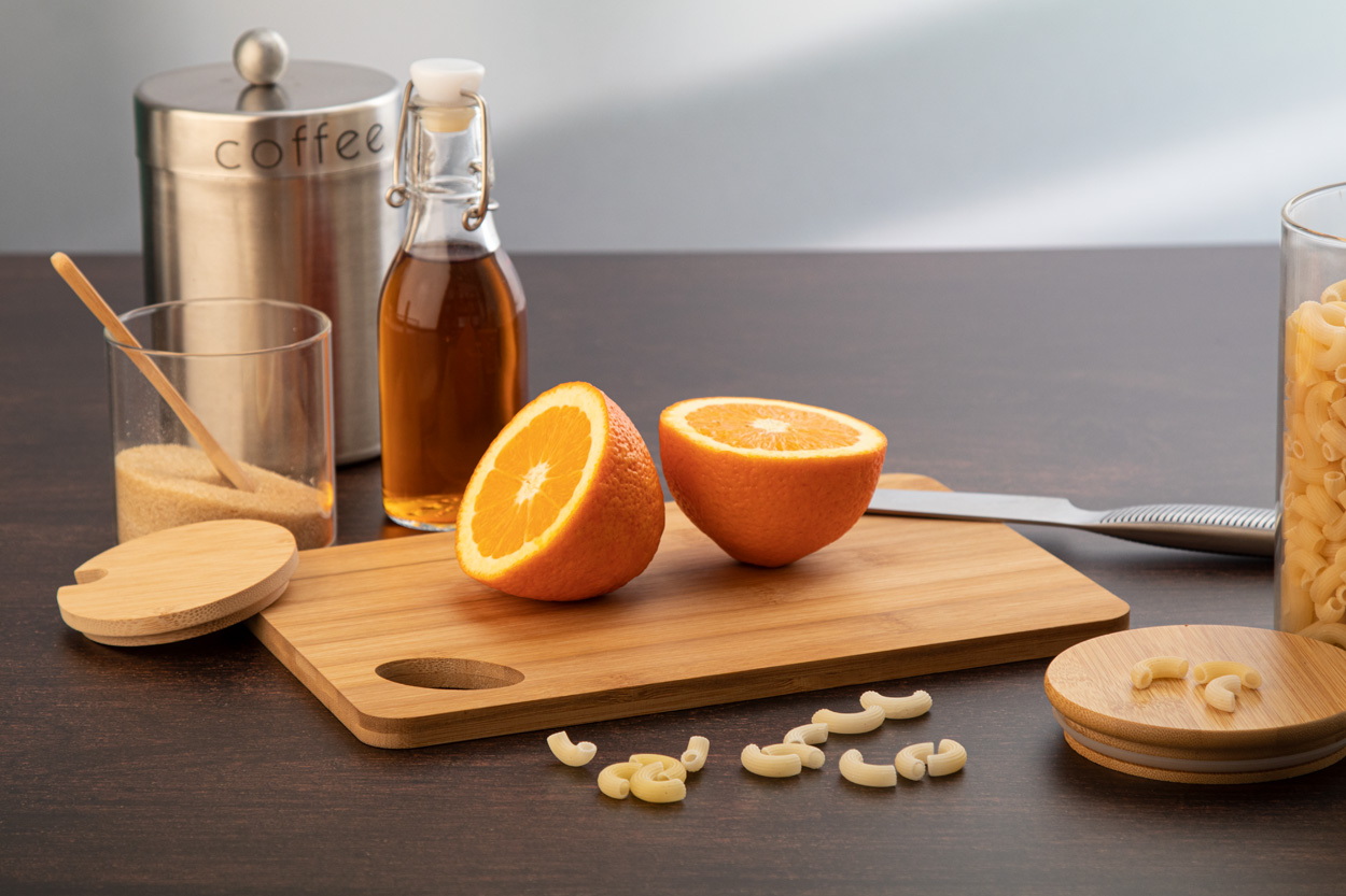 Bambusz vágódeszka kivágással.