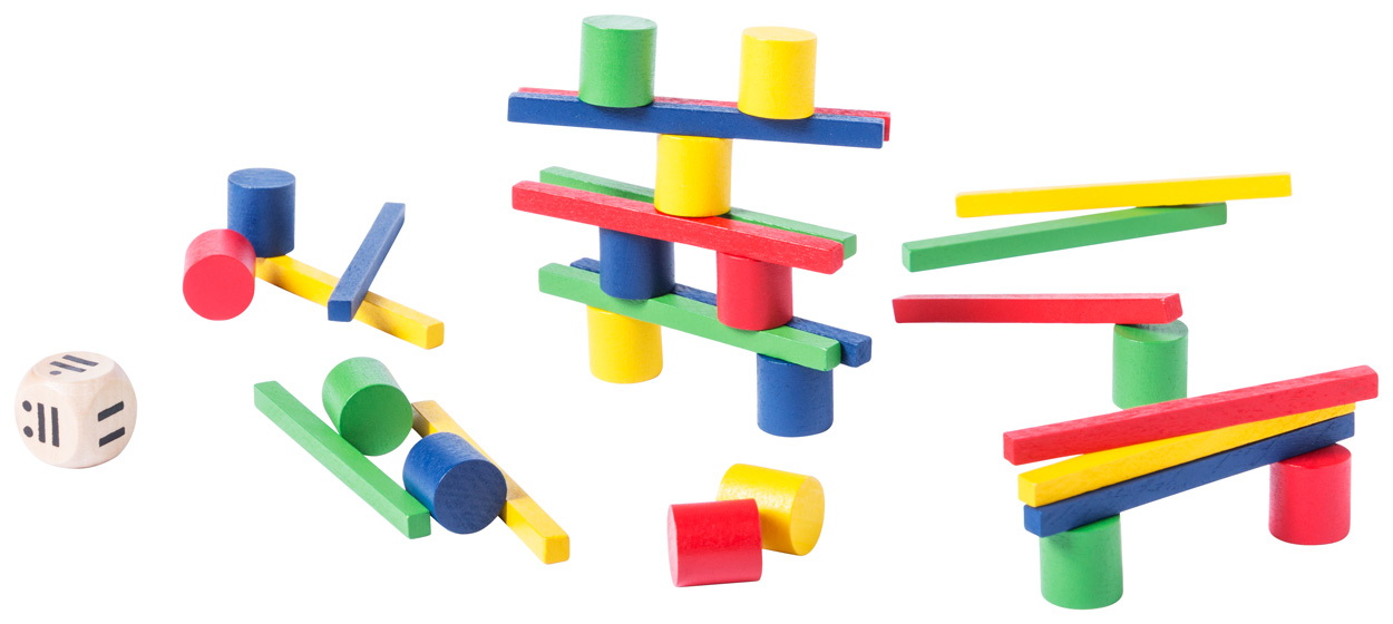 33 részes színes, fa ügyességi játék dobókockával. Szövet tasakban szállítjuk.
