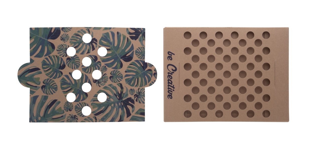 Egyediesíthető kraft papír tolltartó. Az ár tartalmazza a full-colour nyomtatás költségét. Minimális rendelési mennyiség: 100 db. Lapra szerelve szállítjuk.