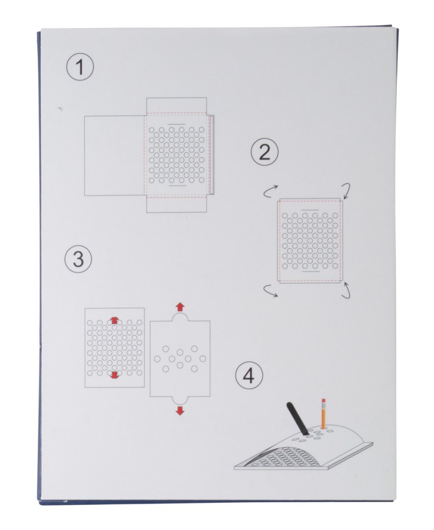 Egyediesíthető papír tolltartó. Az ár tartalmazza a full-colour nyomtatás költségét. Minimális rendelési mennyiség: 100 db. Lapra szerelve szállítjuk.