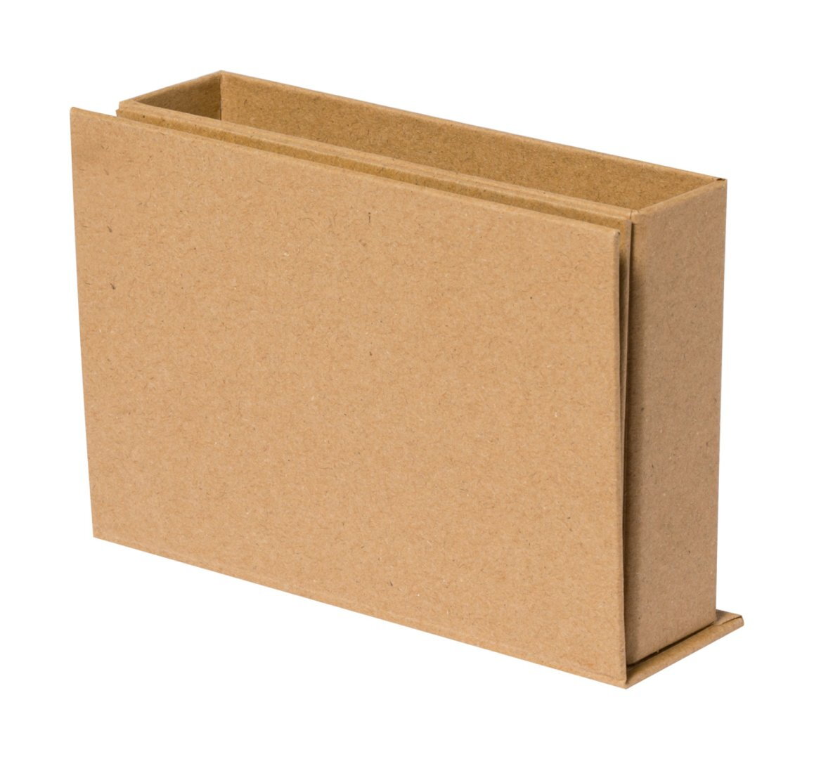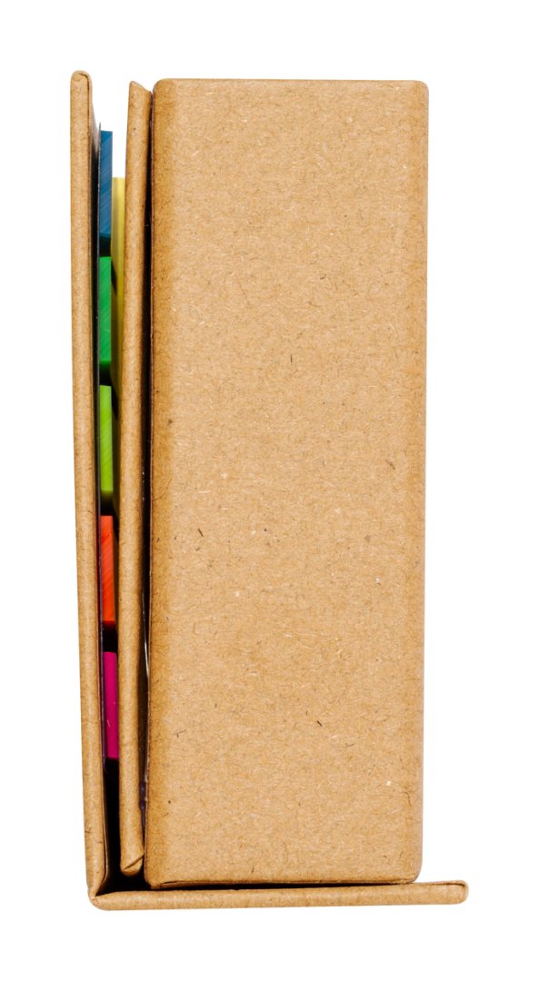 Újrahasznosított kartonból készült asztali tolltartó képtartóval, 25 öntapadós jegyzetlappal és 125 oldaljelölővel (5 féle színben).