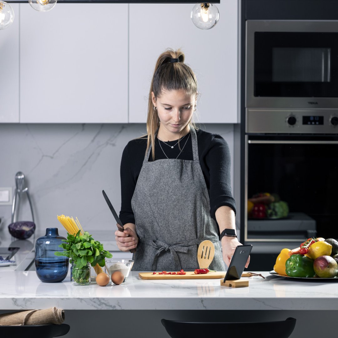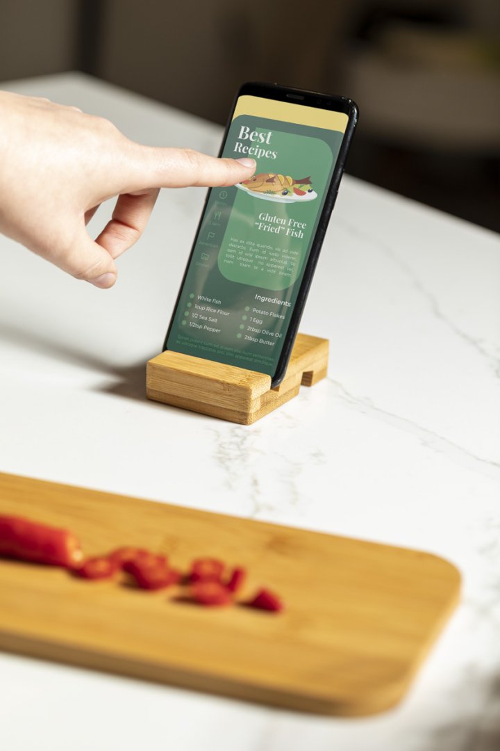 Bambusz mobiltelefon tartó. Két tartó nyílással telefonokhoz és tabletekhez.