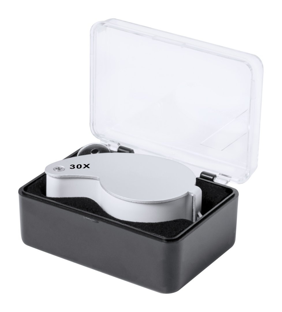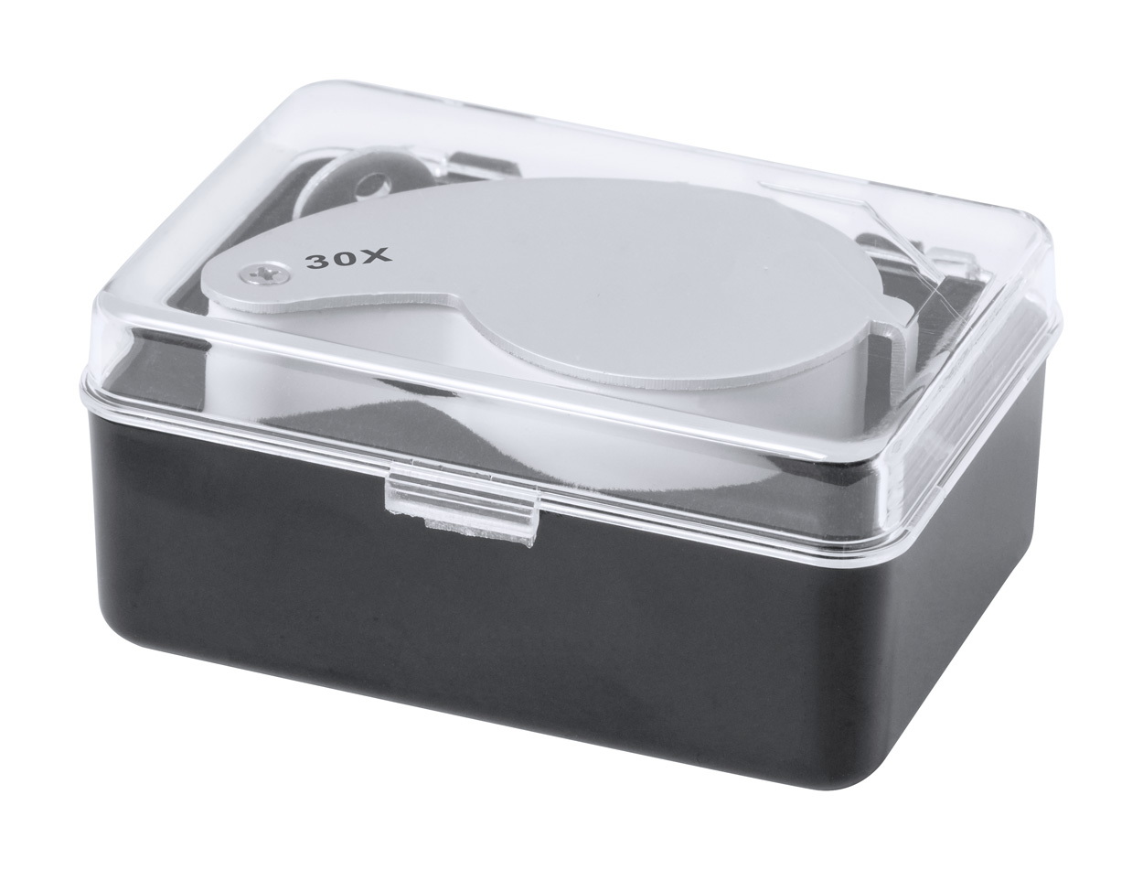 Összecsukható ABS műanyag és fém nagyító 2 LED-del. Gombelemmel szállítjuk.