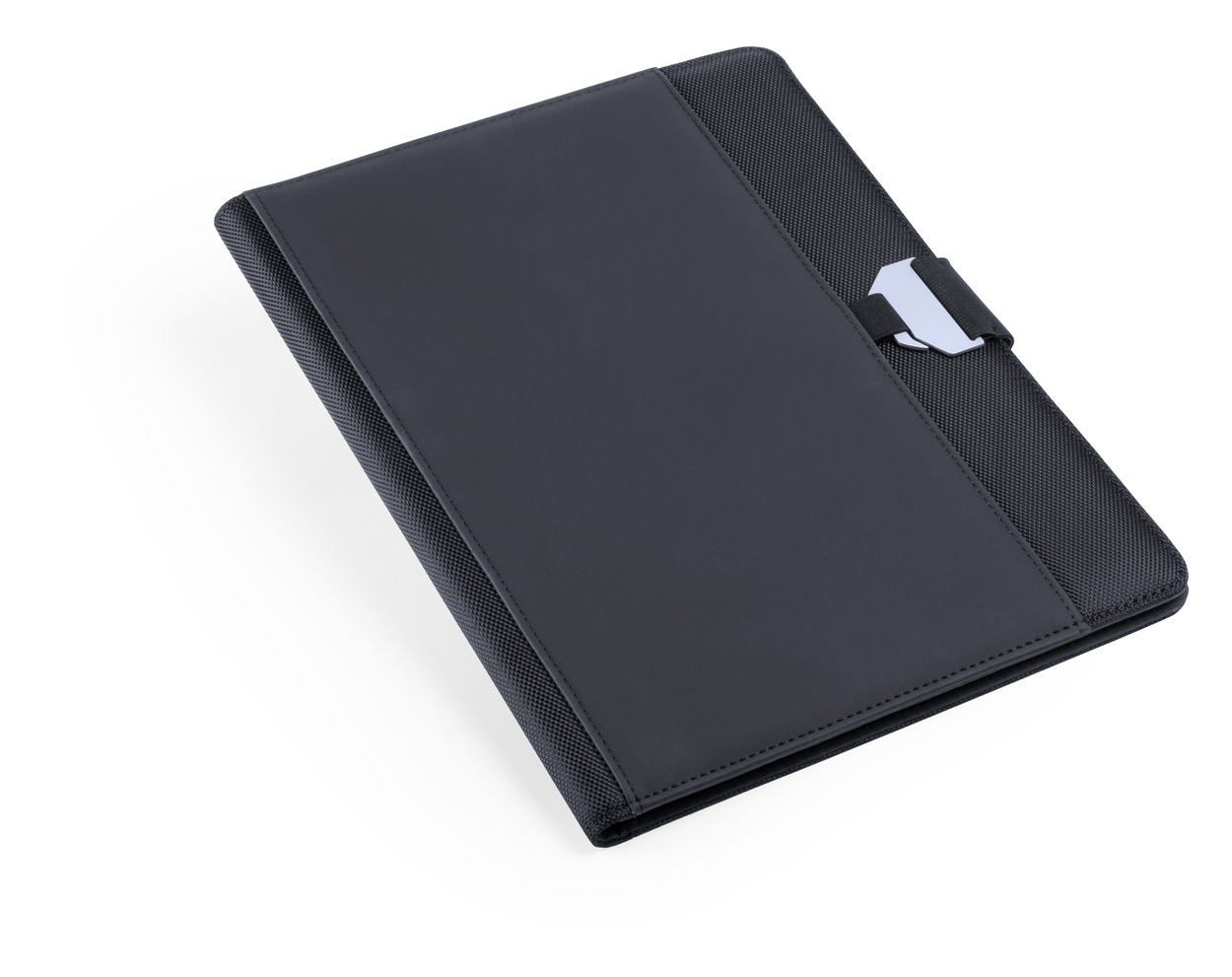 A4-es méretű műbőr és poliészter iratmappa 20 lapos jegyzettömbbel.