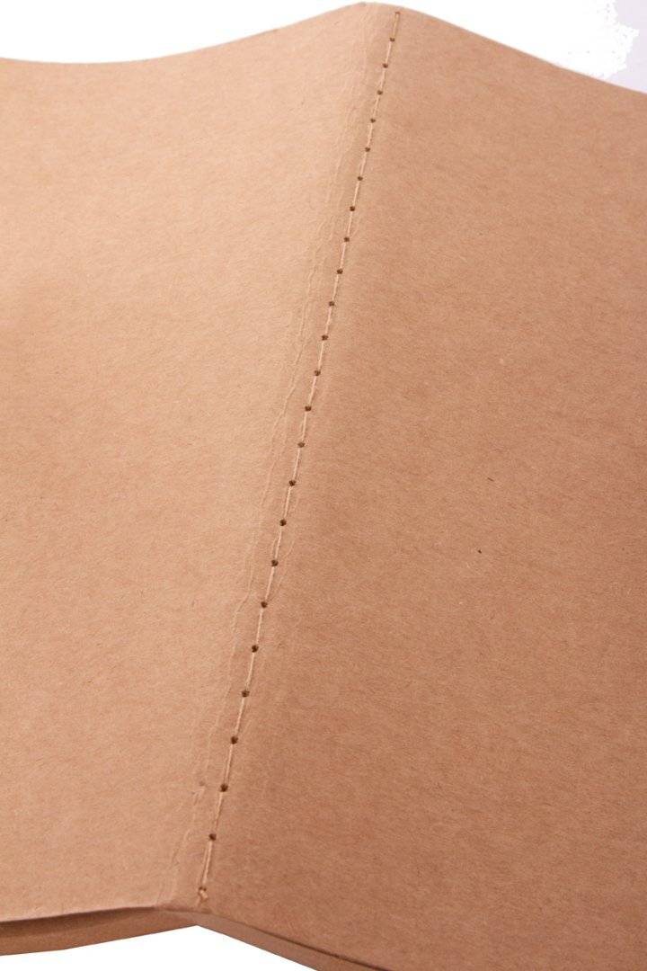 Újrahasznosított papír jegyzetfüzet varrott borítással, és 60 darab újrahasznosított kraft papír lappal. A6 méretű.