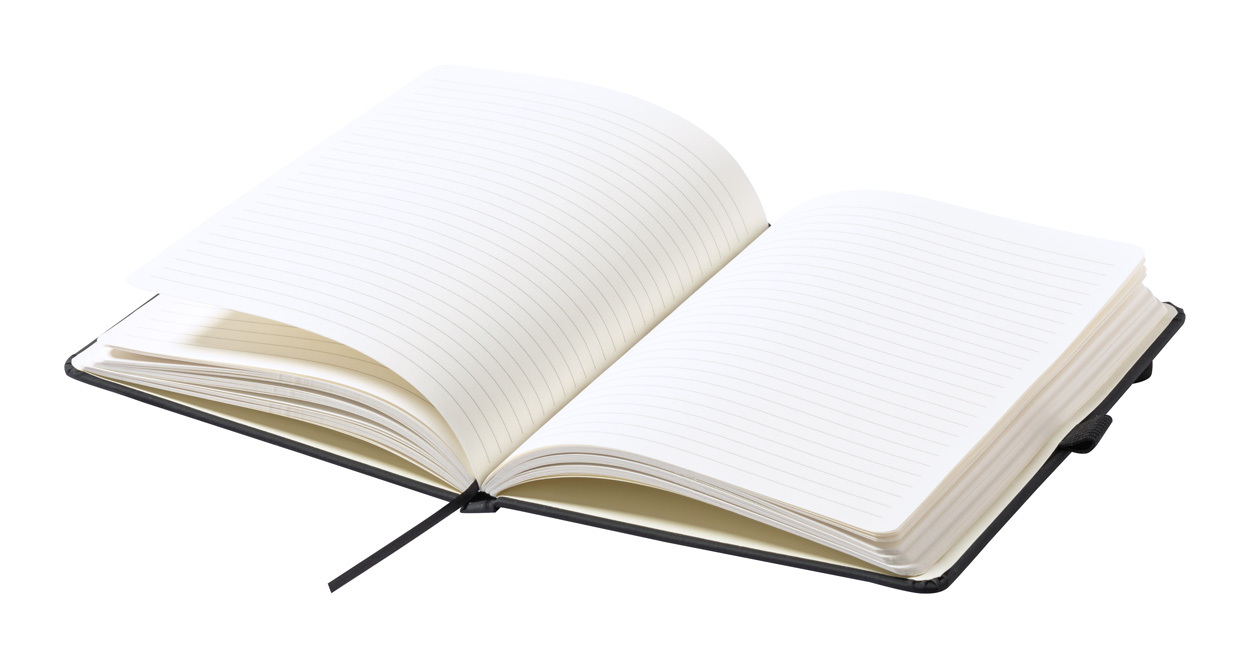 Műbőrrel borított jegyzetfüzet gumipánttal, könyvjelzővel, tolltartóval és 100 vonalas lappal. A5.