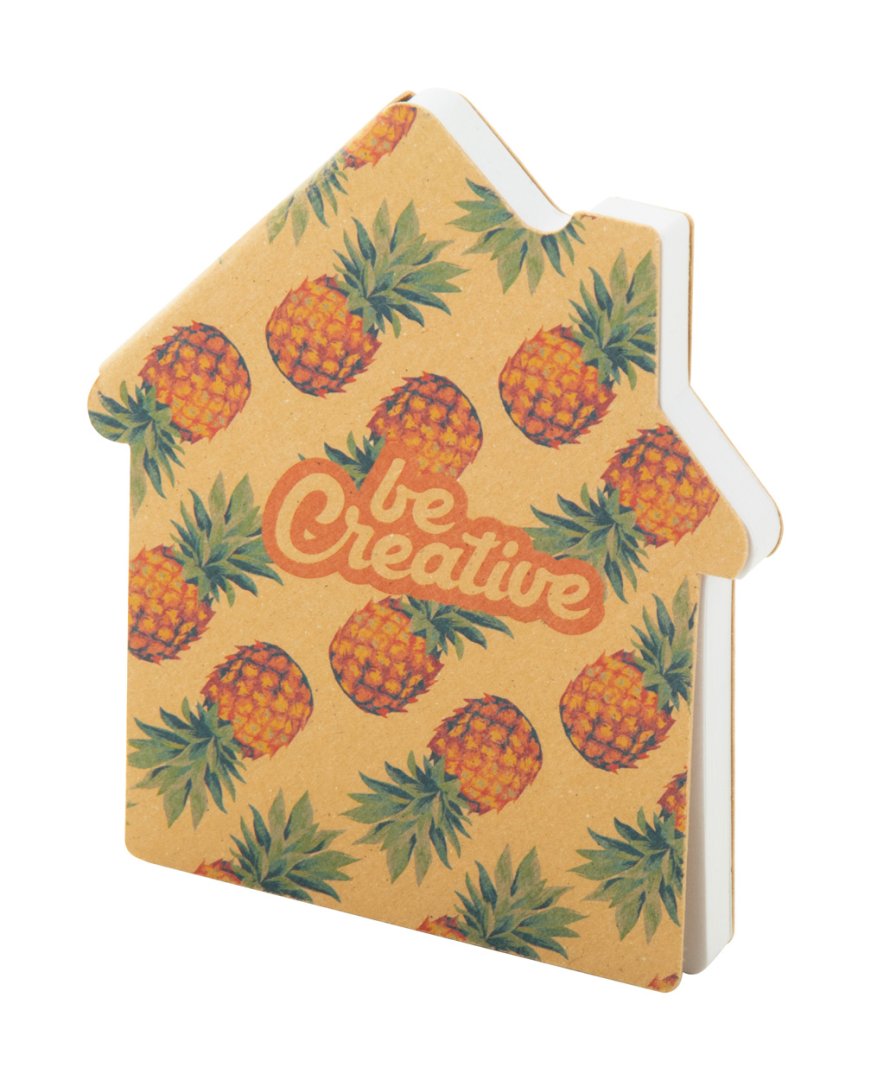 Egyediesíthető, újrahasznosított kraft papír borítású, ház alakú öntapadós jegyzettömb. 50 újrahasznosított papír öntapadós jegyzetlapot tartalmaz. Az ár tartalmazza a külső borító full-colour nyomtatását. Minimális rendelési mennyiség: 100 db.