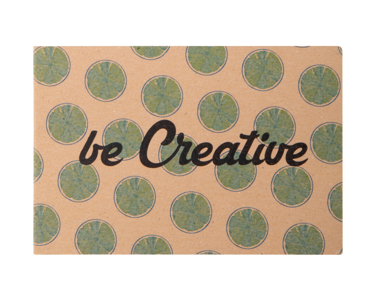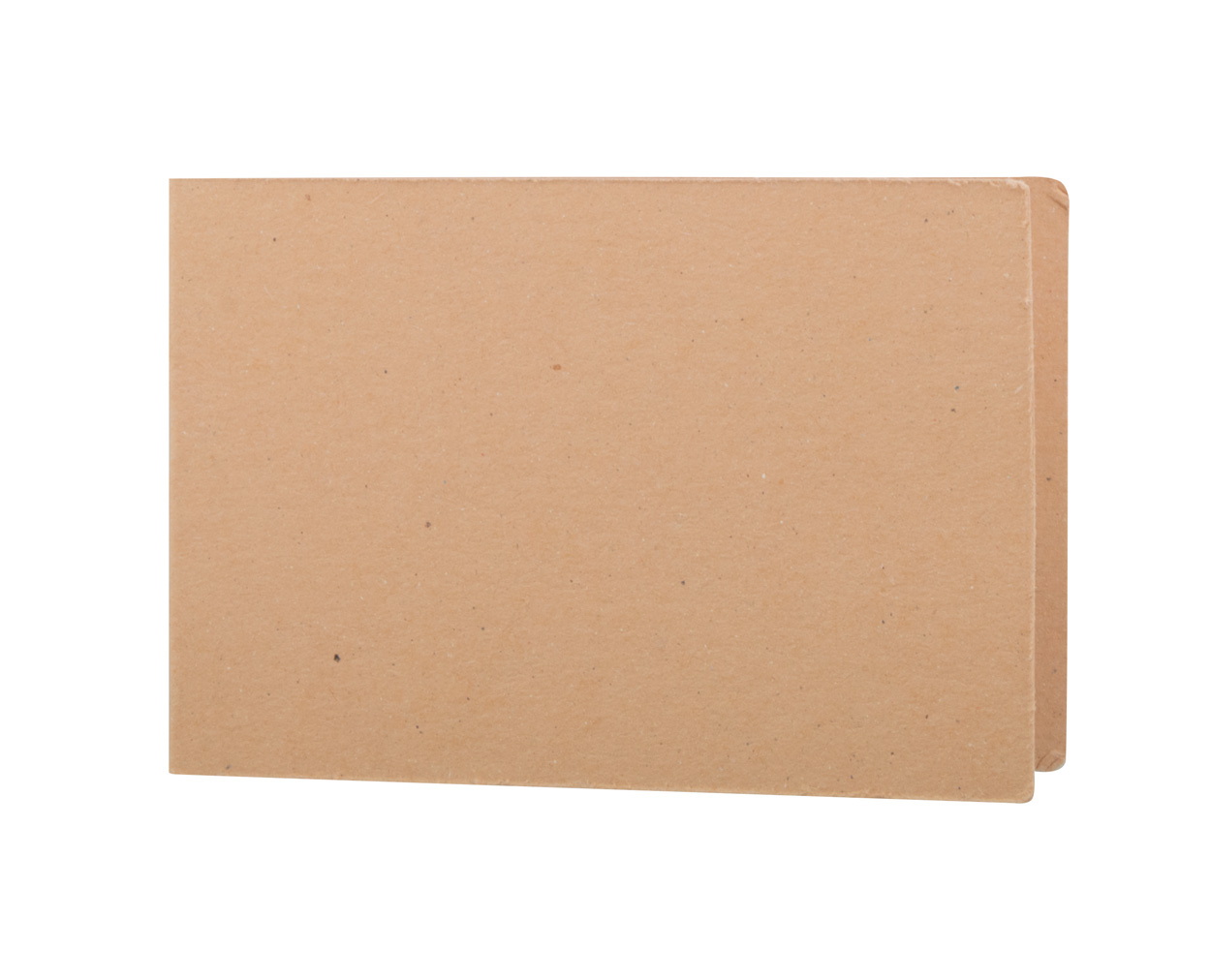 Egyediesíthető, újrahasznosított kraft papírral borított öntapadós jegyzettömb. Tartalmaz 100 műanyag fólia oldaljelölőt 5 különböző színben (44×12 mm). Az ár tartalmazza a külső borító full-colour nyomtatását. Minimális rendelési mennyiség: 100 db.