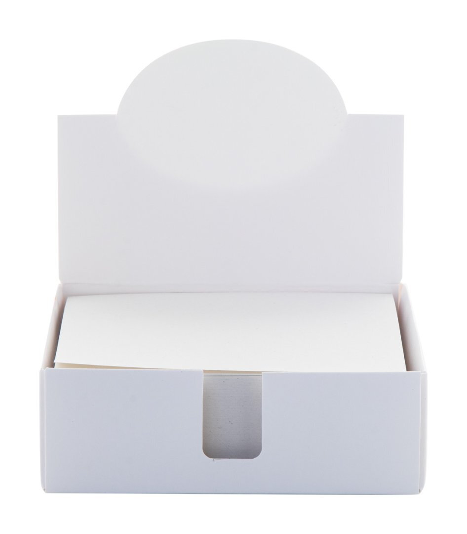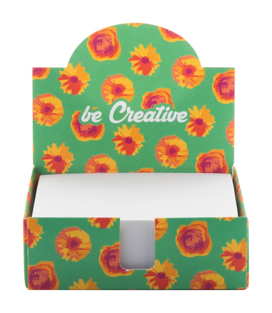 Egyedi gyártású jegyzettartó, 300 db újrahasznosított papírból álló jegyzettömbbel (90×90 mm). Az ár tartalmazza a full colour nyomtatást a tartón. Minimális rendelési mennyiség: 100 db.
