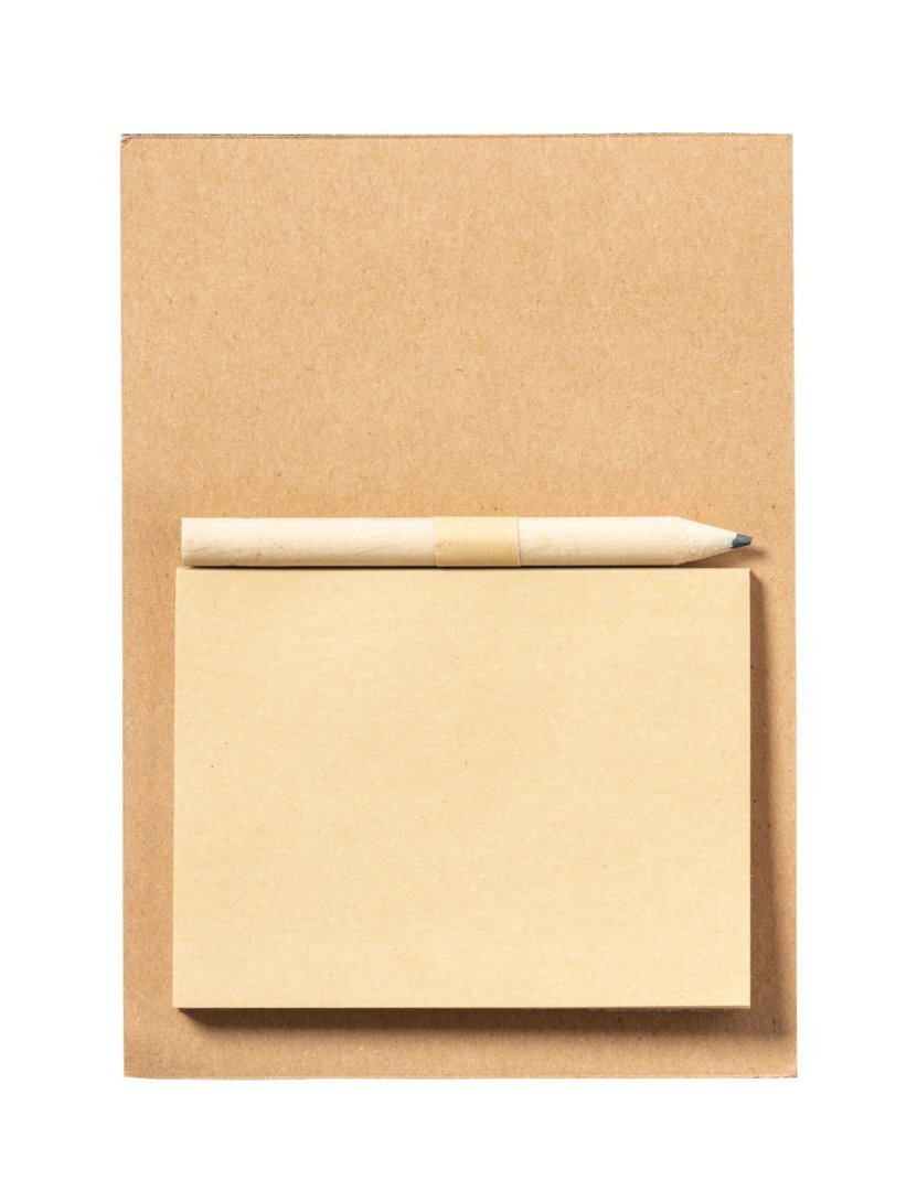 Újrahasznosított papírból készült mágneses jegyzettömb 40 üres lappal és mini fa ceruzával.