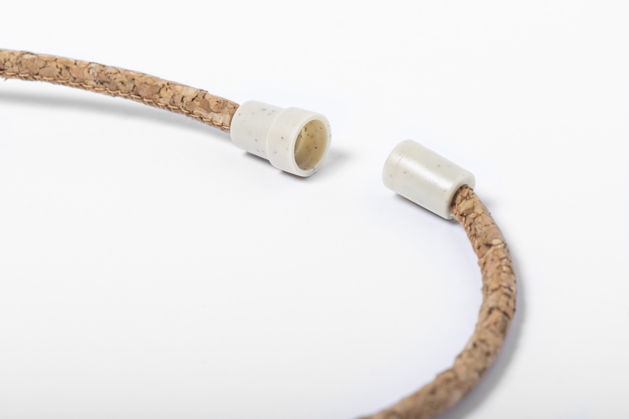 Természetes parafa nyakpánt fém karabinerrel és búzaszalma műanyag biztonsági csattal.