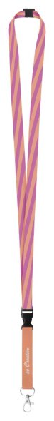 Egyedi, 15 mm széles műanyag nyakpánt levehető fém karabinerrel és biztonsági csattal. Szublimációs eljárással nyomtatott grafikával mindkét oldalon. Min. rendelés: 100 db.