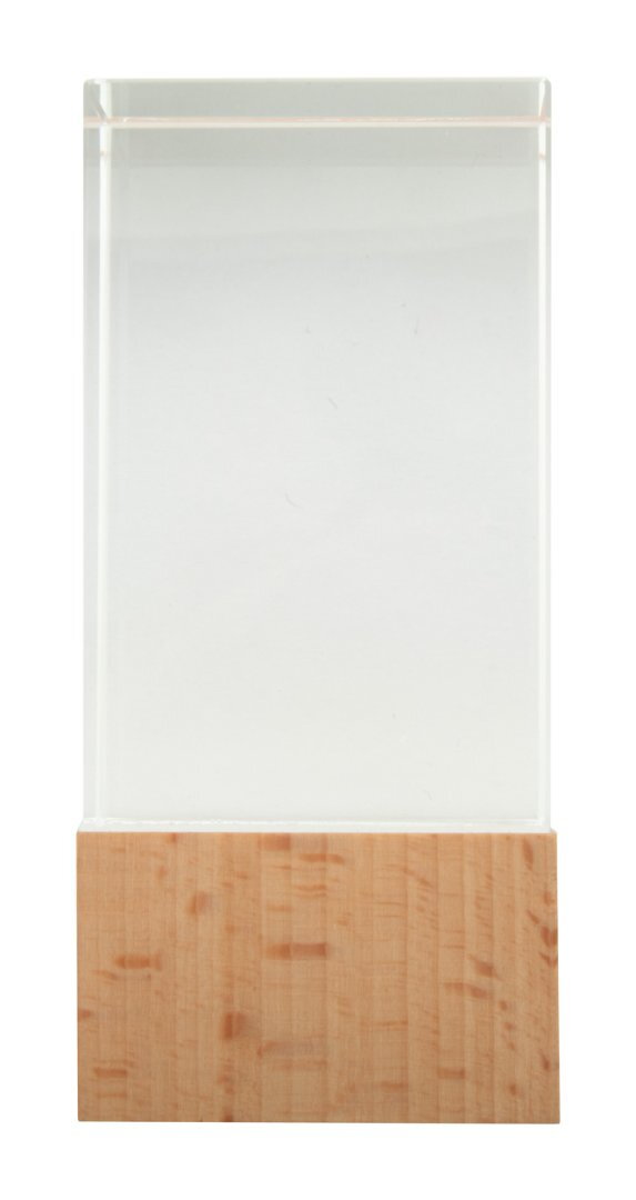 Üvegtrófea bükkfa alappal, kraft papír ajándékdobozban.
