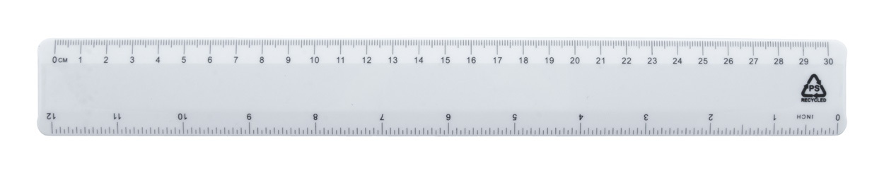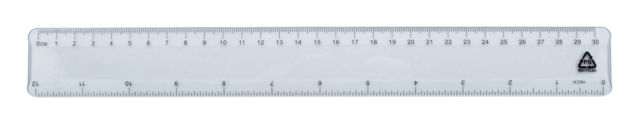 Újrahasznosított PS műanyag vonalzó, 30 cm.