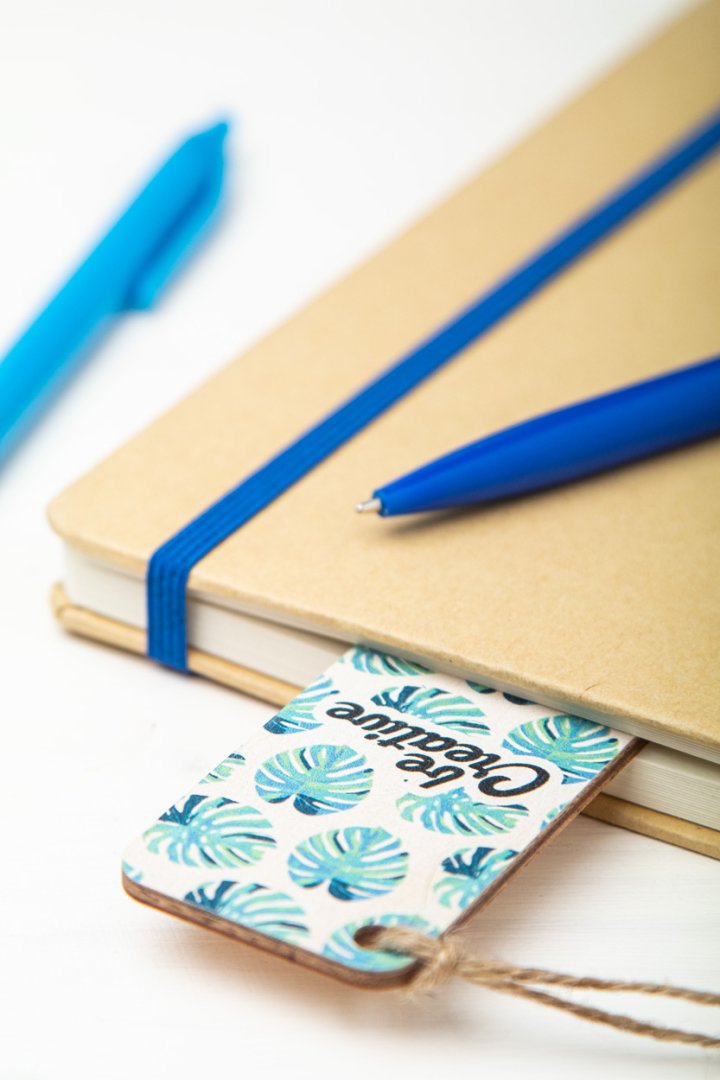 Egyediesíthető, rétegelt nyírfából készült könyvjelző full colour grafikával és vászon zsinórral. Az ár tartalmazza az UV LED nyomtatást a termék első oldalán. Minimális rendelési mennyiség: 100 db.