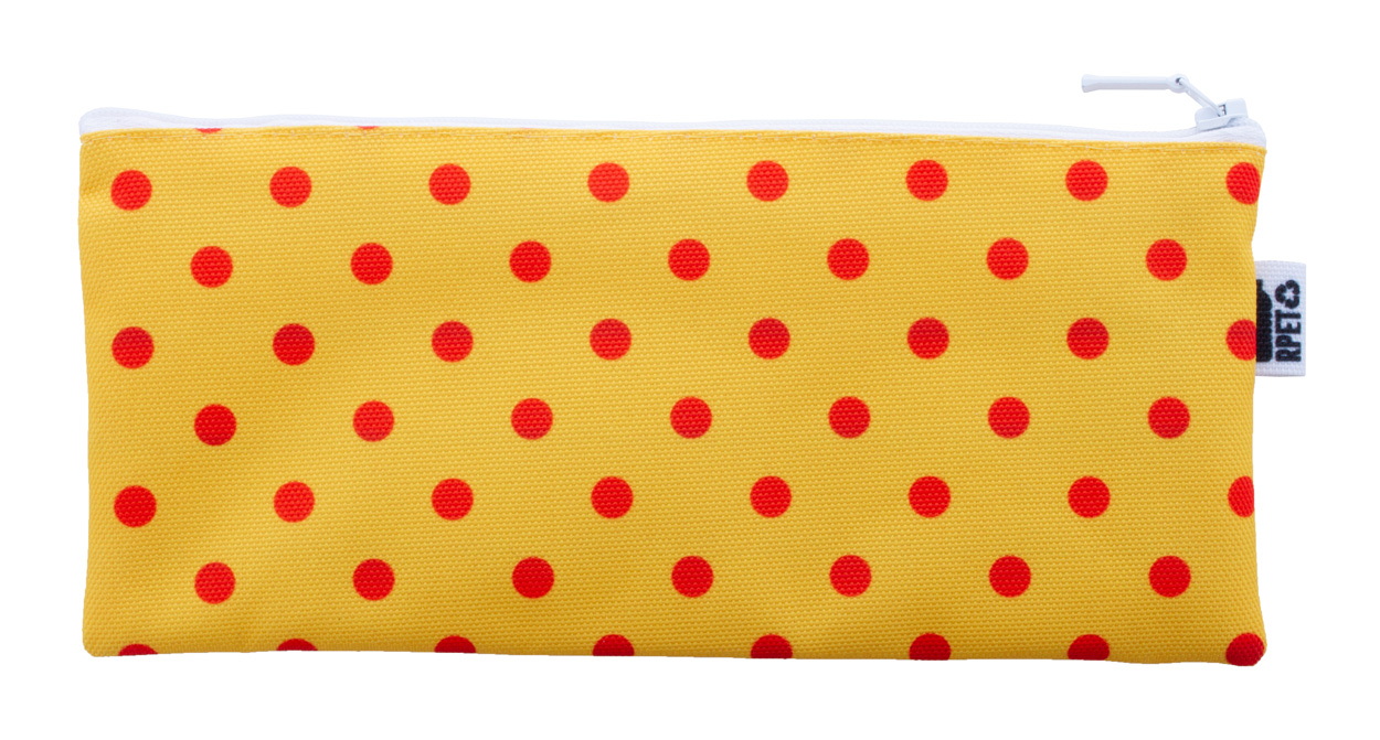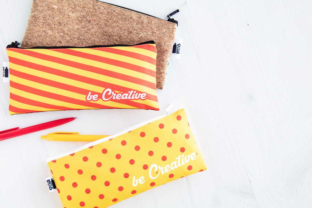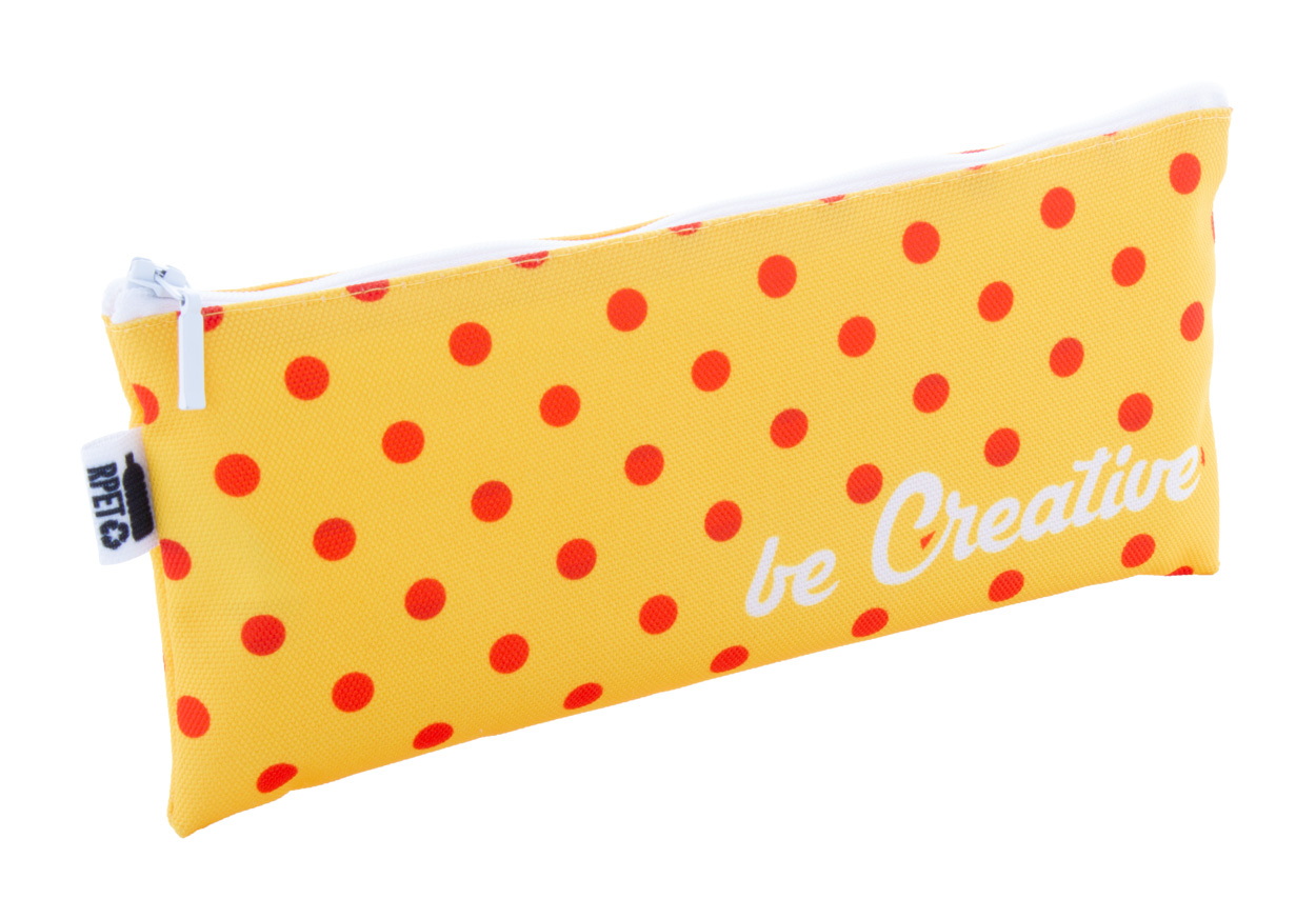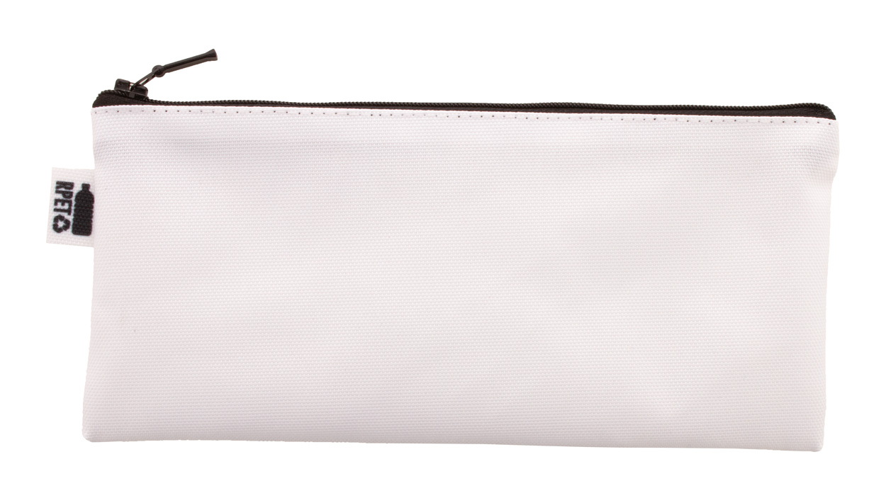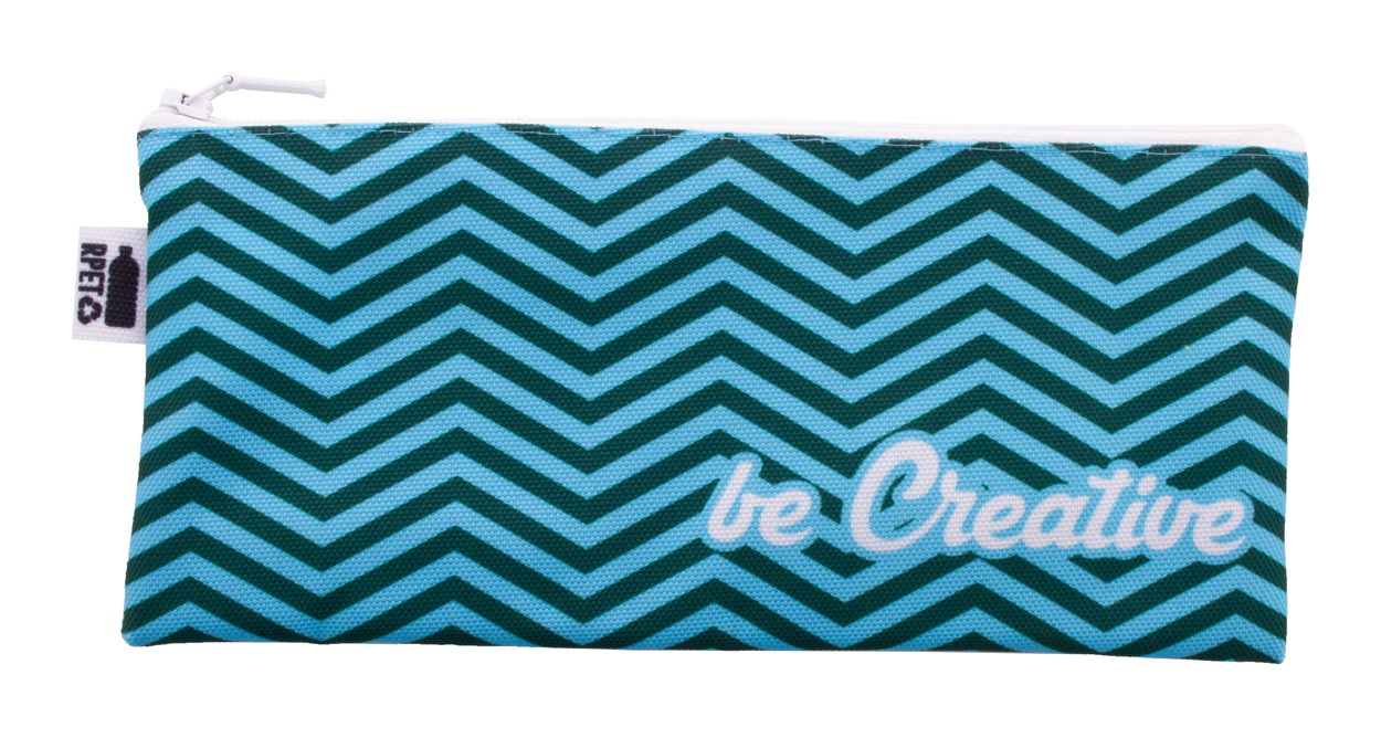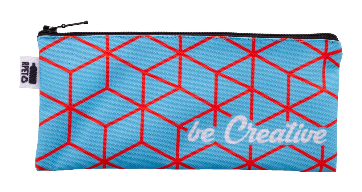 Egyediesíthető cipzáras tolltartó, 600D RPET poliészter. Az ár tartalmazza a szublimációs emblémázás költségét a termék mindkét oldalán és az egyedi RPET címkét. Minimális rendelési mennyiség: 50 db.