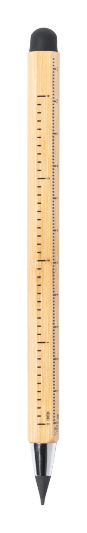 Bambuszból készült, hosszantartó tintamentes toll érintőképernyős gombbal és fémötvözet heggyel, amely oxidálja a papírt. Hatszögletű markolattal, 11 cm-es és 4 hüvelykes vonalzóval. Ez a toll egy ceruzához hasonlóan ír és radírozható.