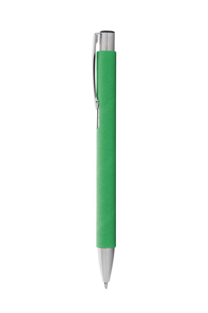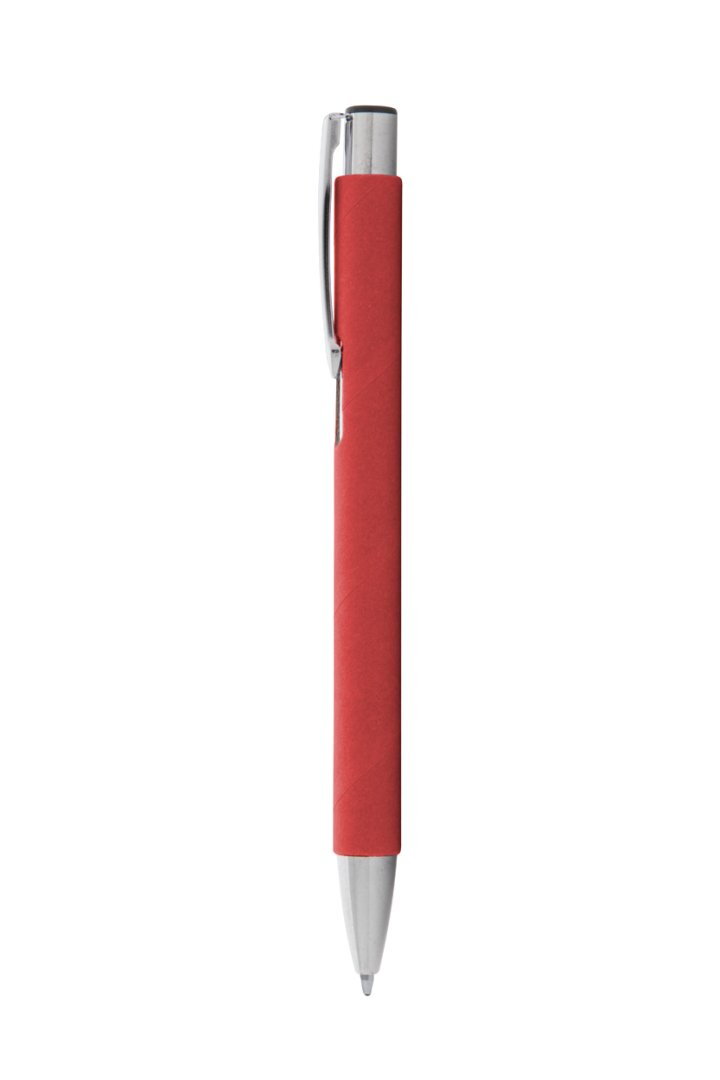 Újrahasznosított papír golyóstoll fém részekkel. Kék tollbetéttel szállítjuk.