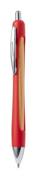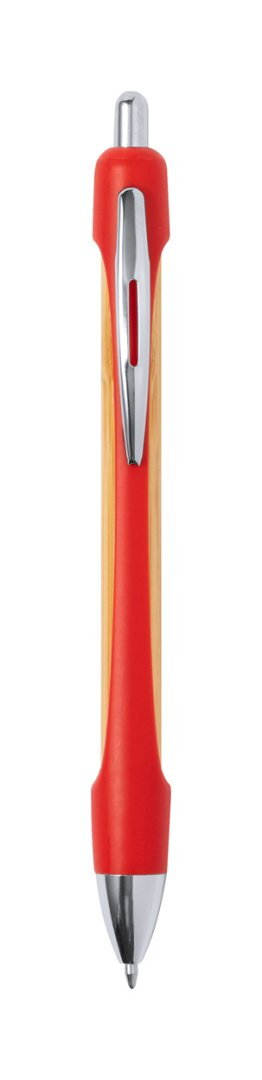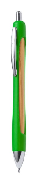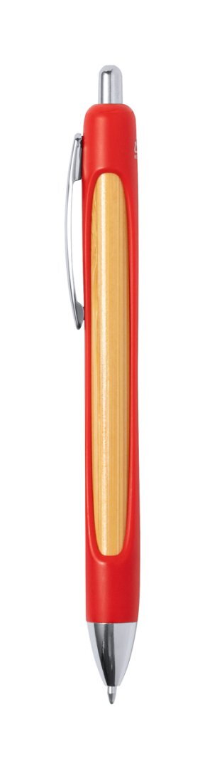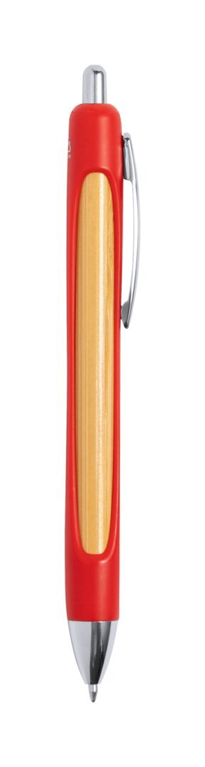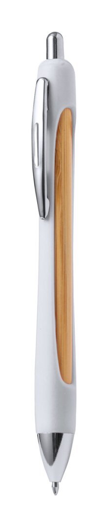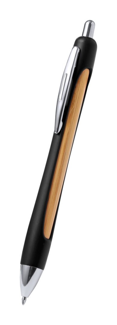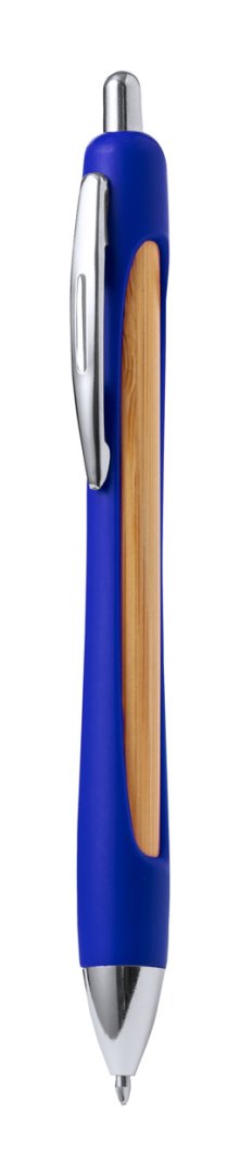 Újrahasznosított ABS és bambusz golyóstoll krómozott részekkel és kék tollbetéttel.