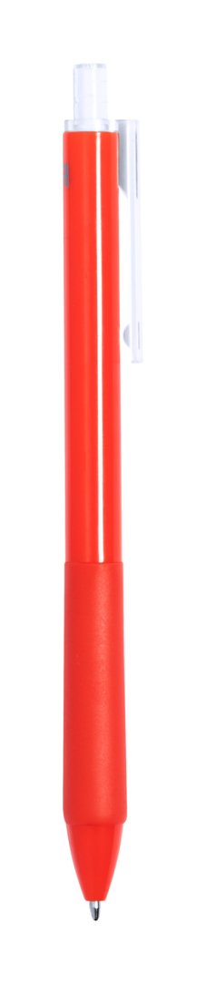 Újrahasznosított ABS műanyag golyóstoll átlátszó gombbal és klipsszel. Kék tollbetéttel szállítjuk.