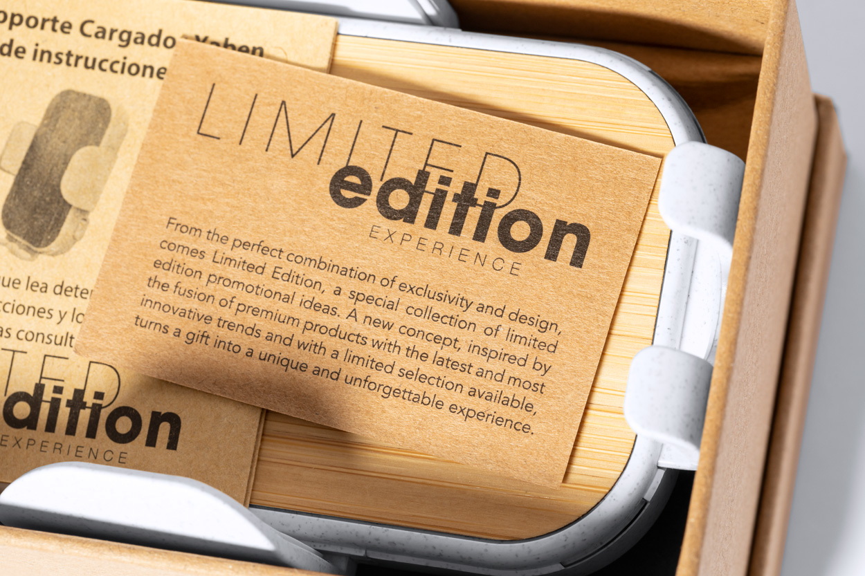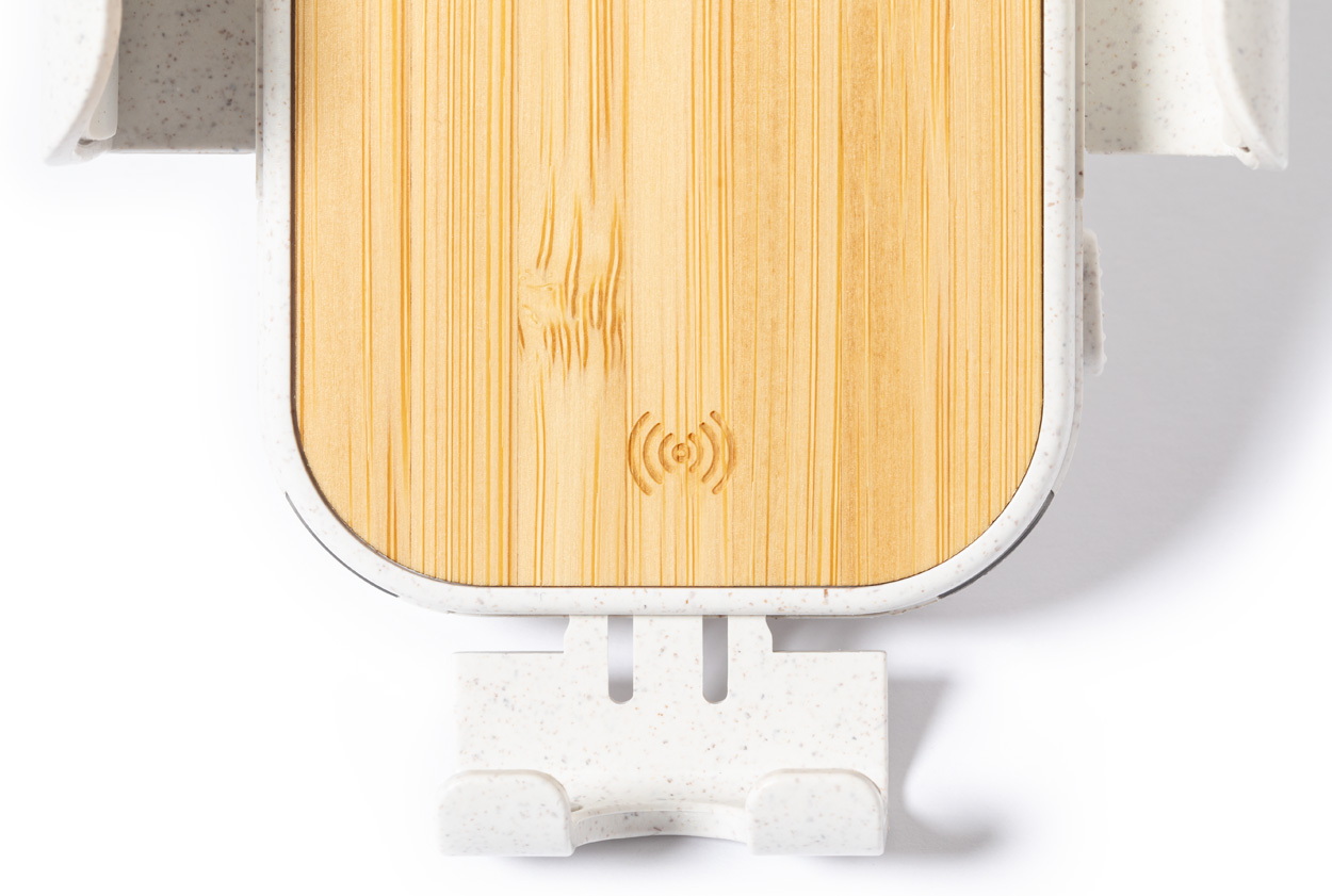 Autós mobiltelefon-tartó beépített vezeték nélküli töltővel (15W), bambuszból és búzaszalma műanyagból. USB-C töltőkábellel szállítjuk. Limited Edition termék.