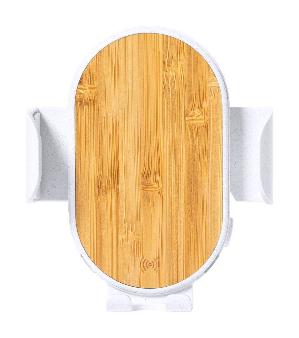 Autós mobiltelefon-tartó beépített vezeték nélküli töltővel (15W), bambuszból és búzaszalma műanyagból. USB-C töltőkábellel szállítjuk. Limited Edition termék.