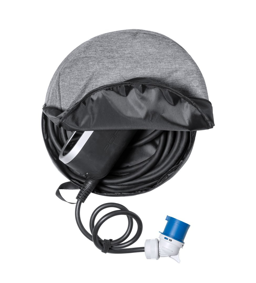 Cipzáras táska elektromos autó töltőkábelhez, két füllel. 600D poliészter.
