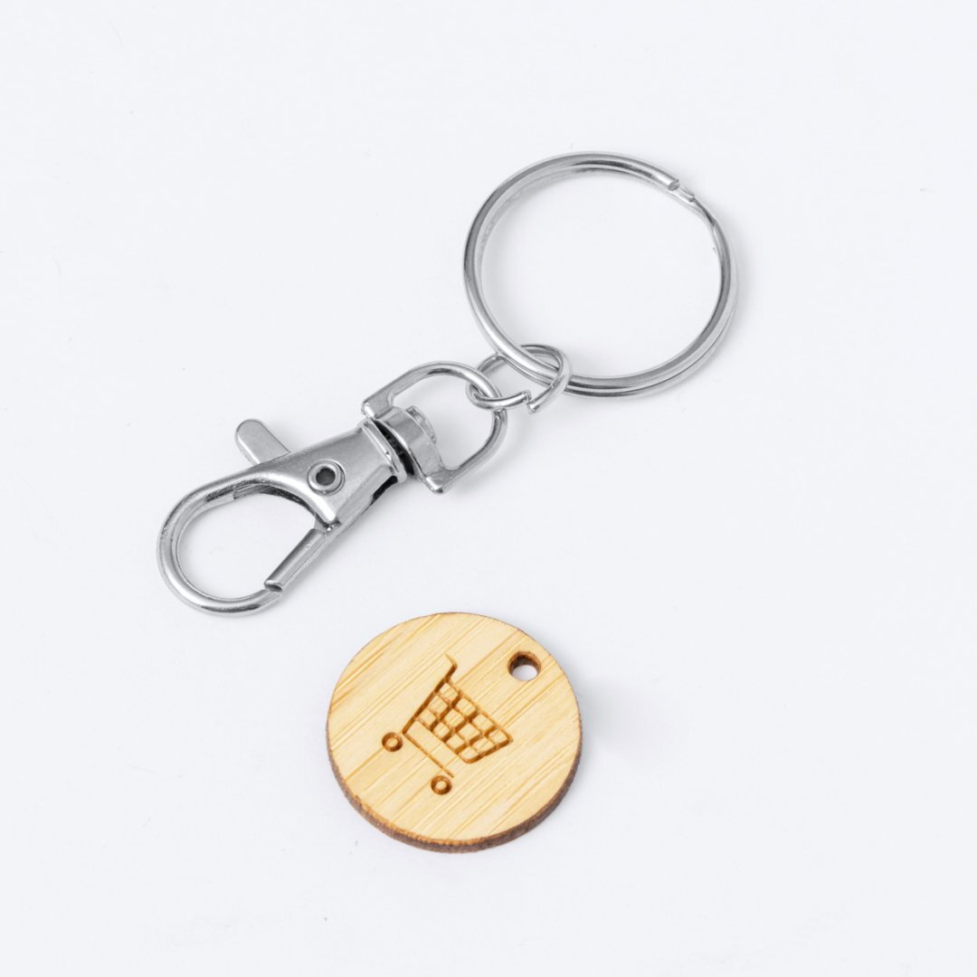 Fém karabineres kulcstartó bambusz bevásárlóérmével.